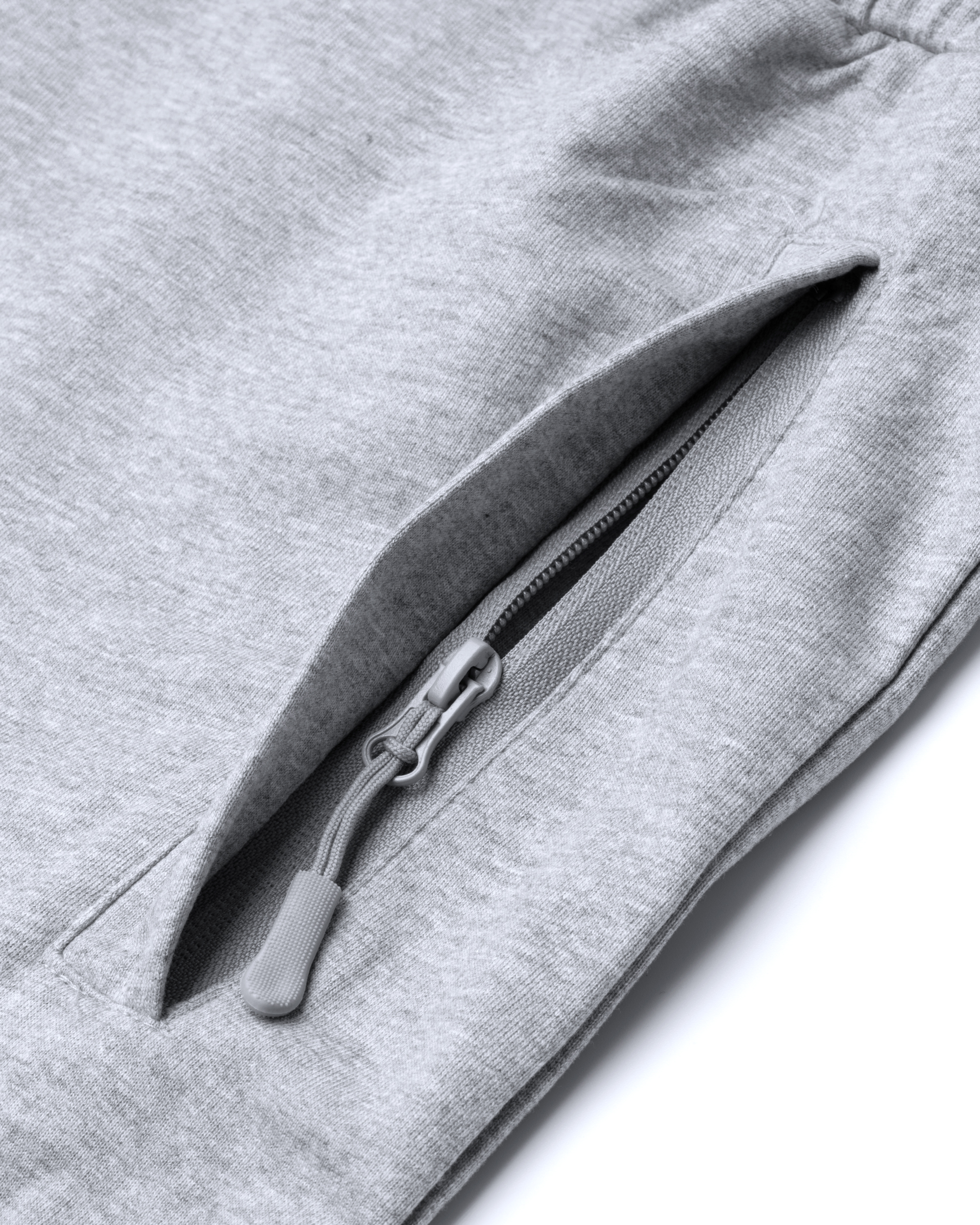 Pantalón largo recto de felpa no perchada básico. Bolsillos laterales con cremallera en tallas de adulto. Cinturilla engomada con cordón ajustable y ojales metálicos. Bolsillo trasero con cierre de velcro. Puños en rib 1×1.