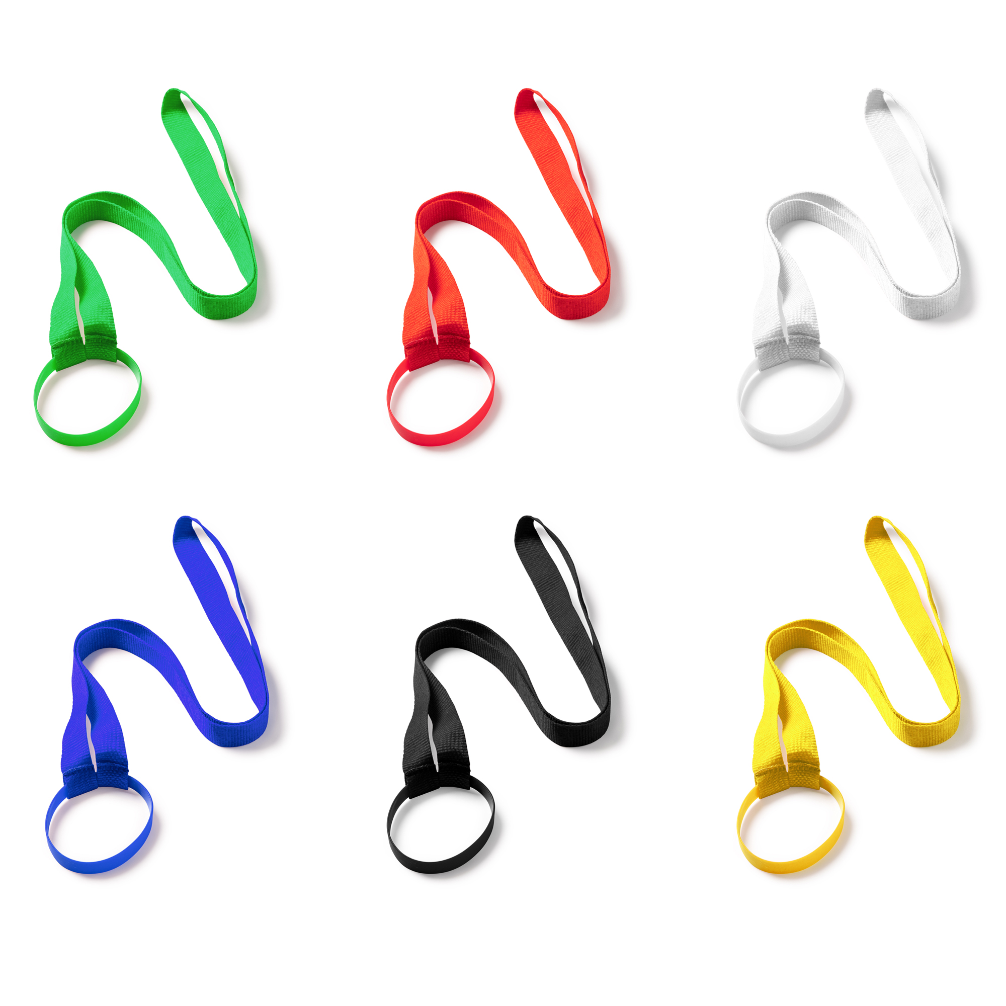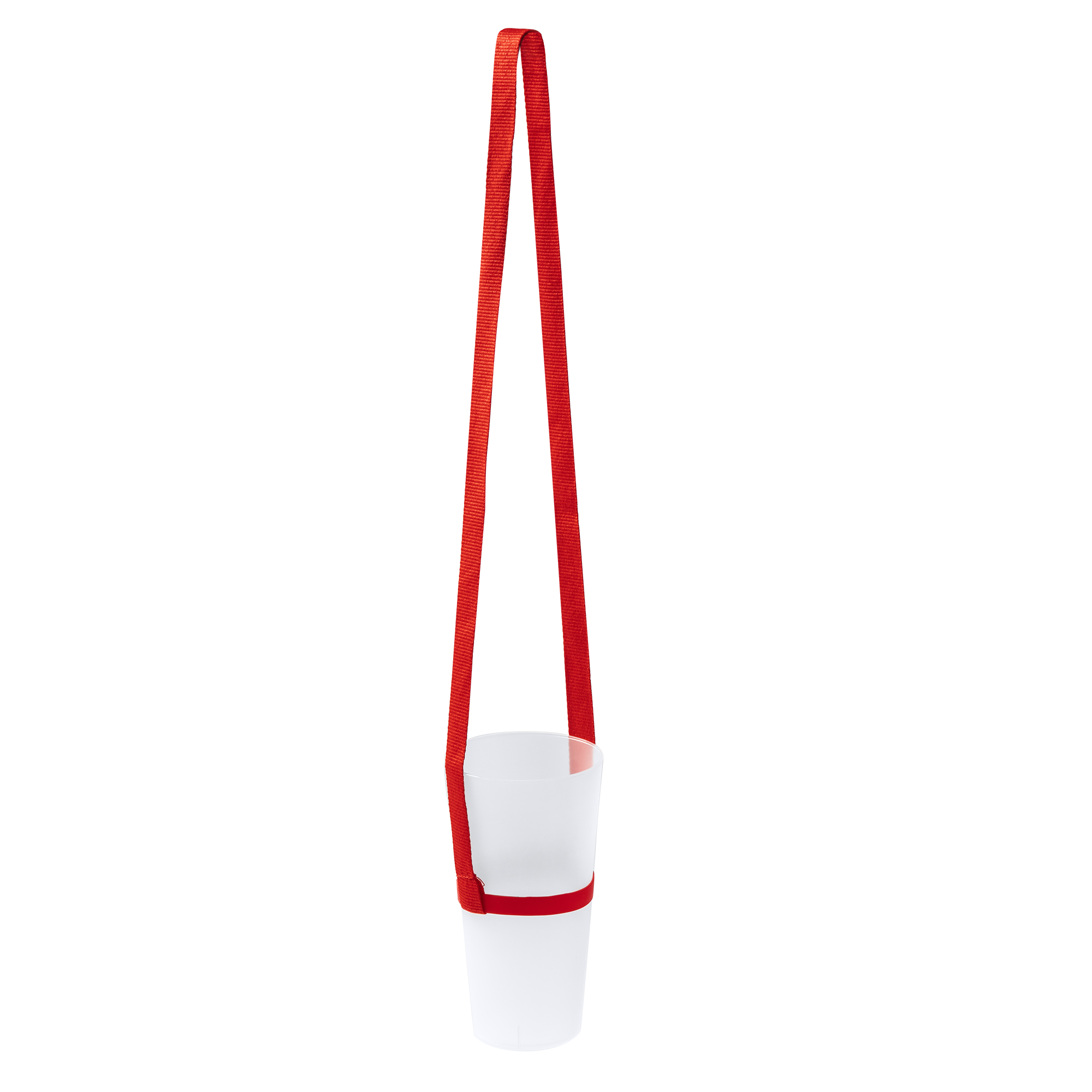 Lanyard portavasos con banda de silicona adaptable.