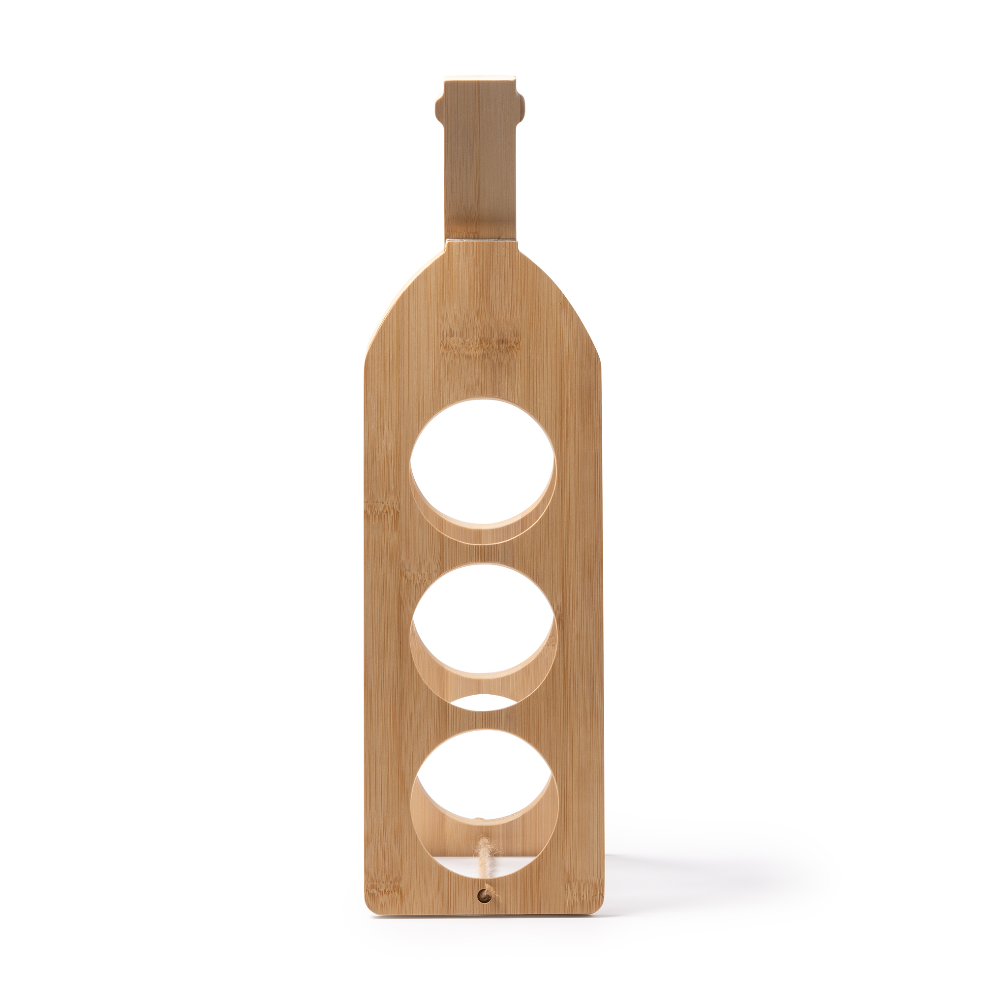 El botellero elaborado con bambú es un accesorio práctico y estético para exhibir y almacenar tus botellas de forma segura. Con capacidad para 3 botellas, este botellero te permite organizar y mostrar tus bebidas favoritas de manera elegante.