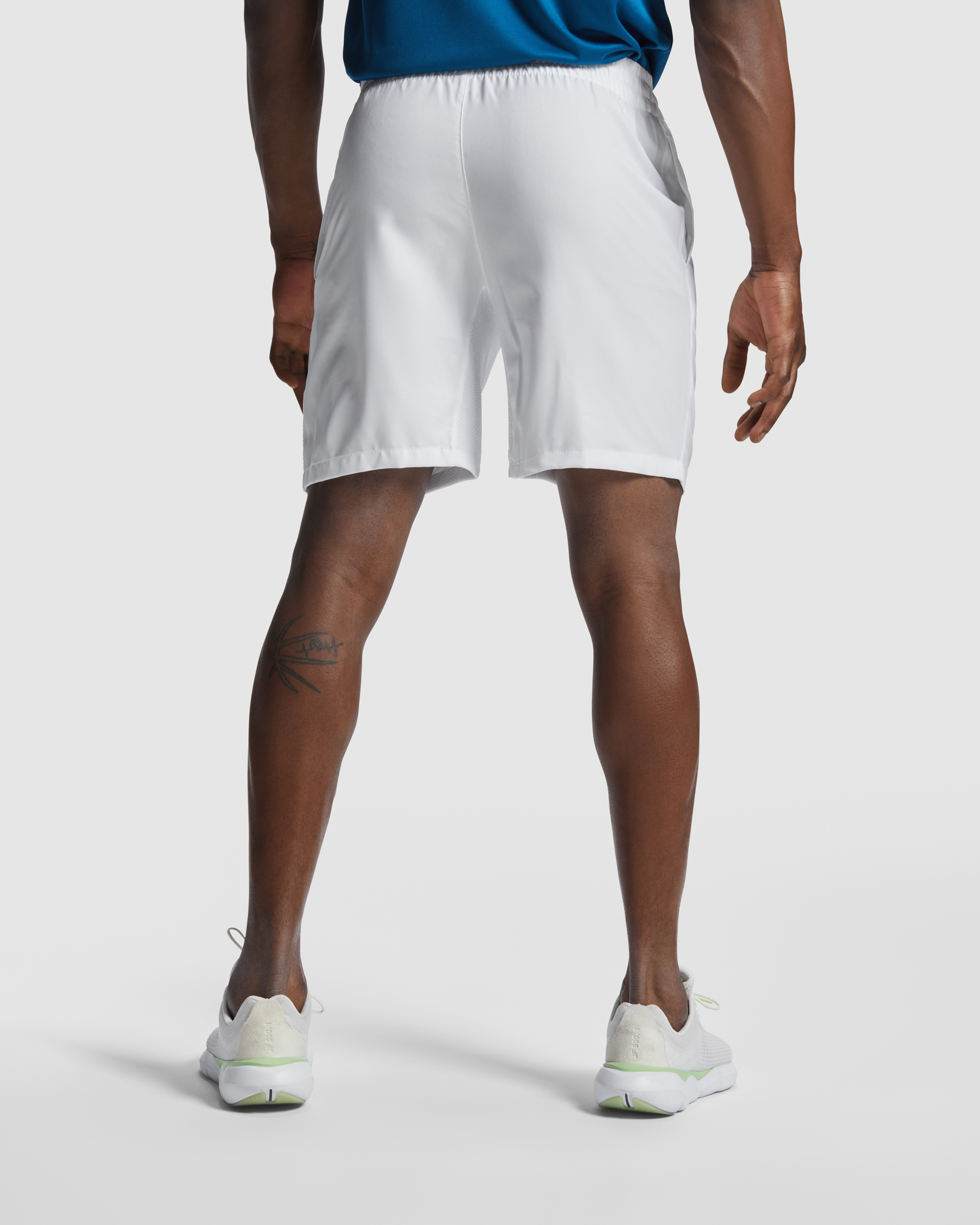 Pantalón corto deportivo tejido ligero. Panel en la entrepierna de tejido ligero y transpirable. Bolsillos laterales con forro de rejilla. Cintura engomada y cordón ajustable.