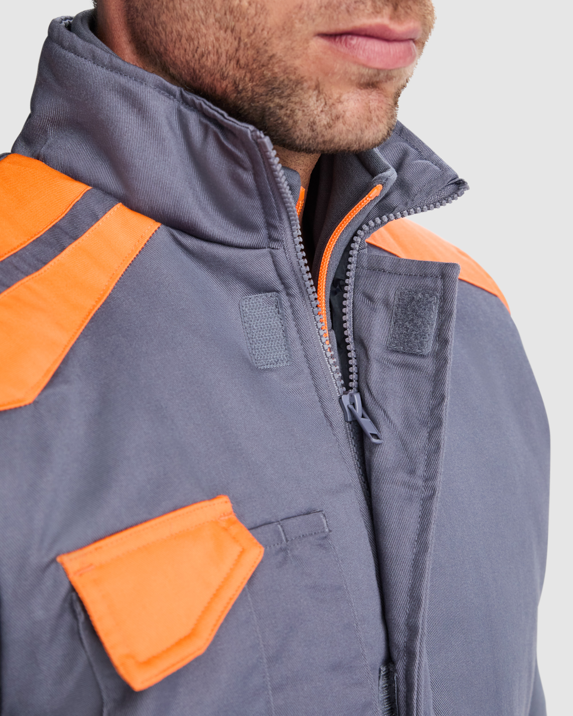 Chaleco laboral multibolsillos acolchado con faldón trasero.