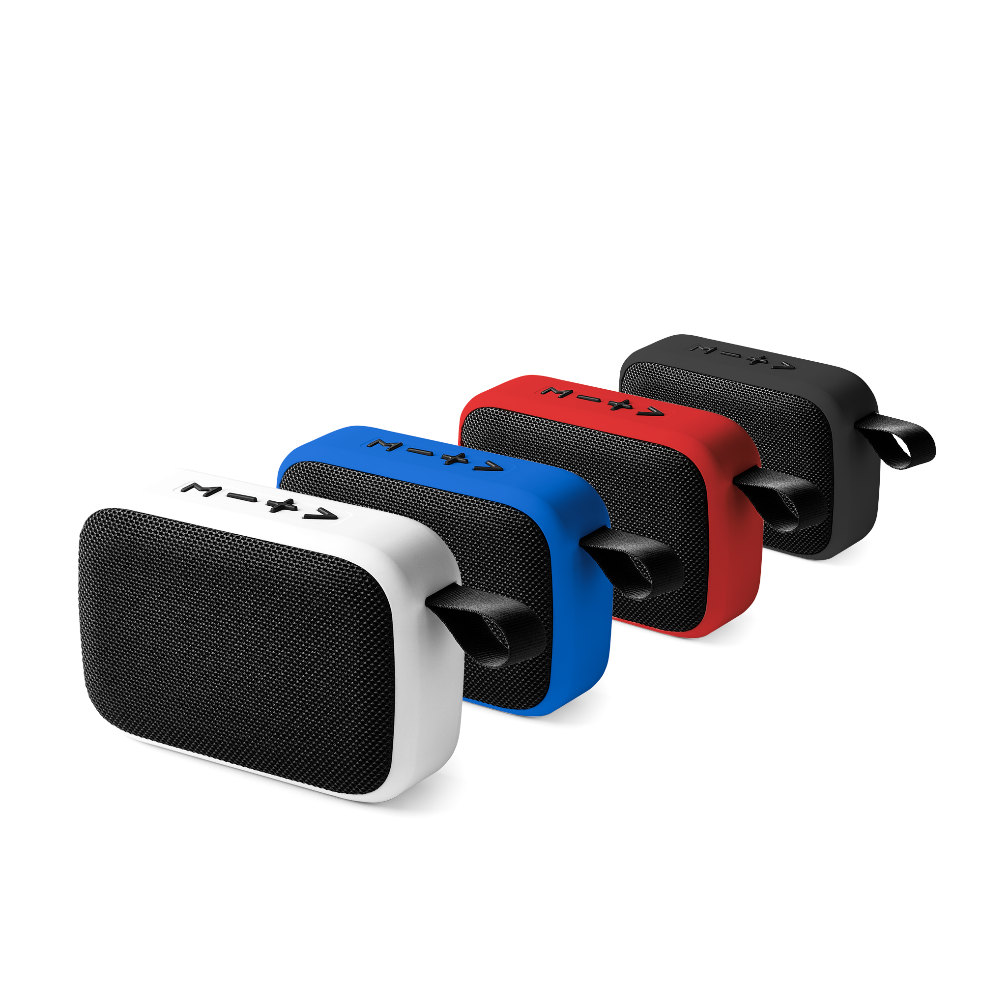 Altavoz inalámbrico bicolor con Bluetooth con cuerpo acabado mate, asa de transporte, botones y tela a juego. Potencia de 3W y batería recargable. Cuenta con función manos libres, incorpora micrófono y botones multifunción para control de llamadas. Reproducción de audio Bluetooth, tarjeta MicroSD, modo radio FM y entrada de audio AUX