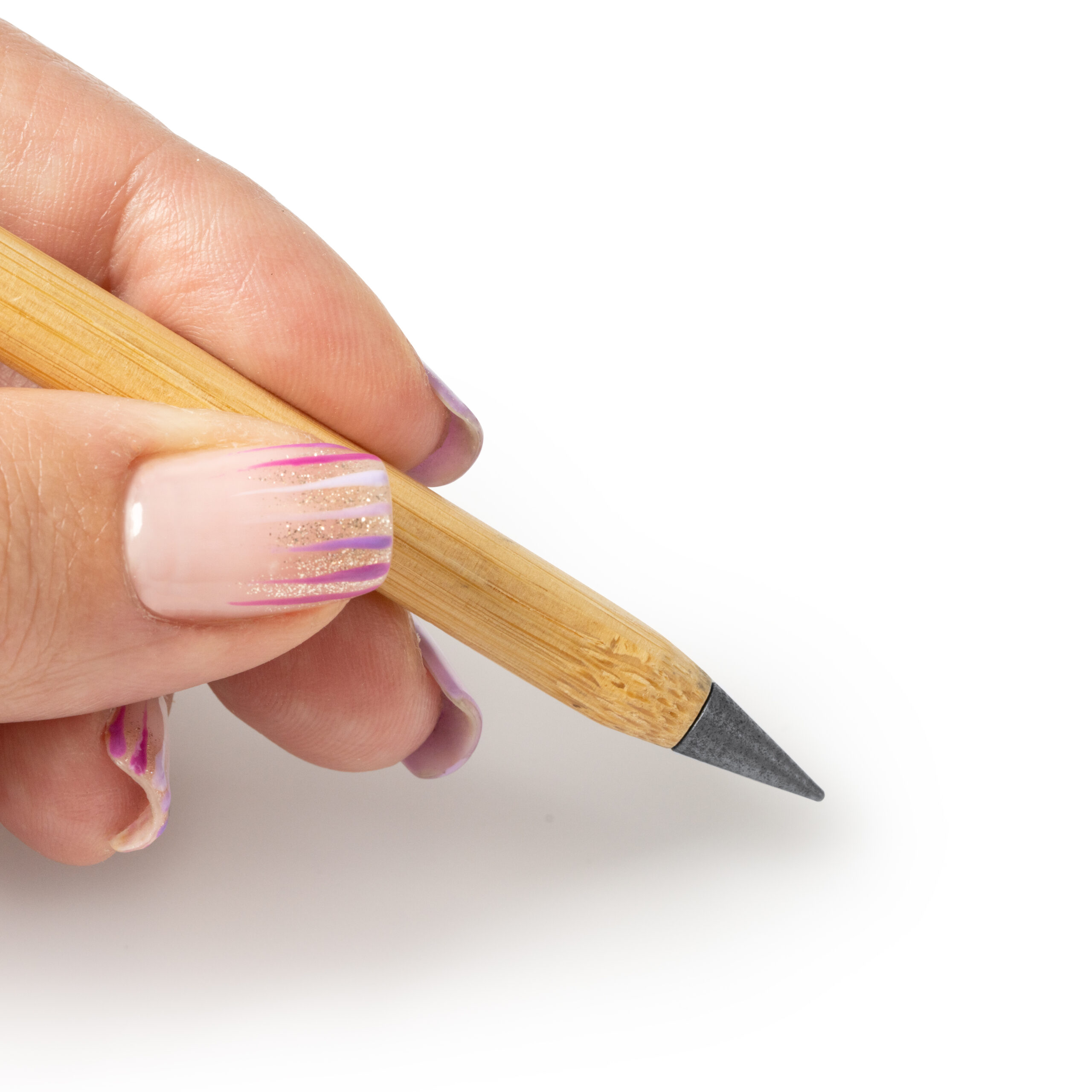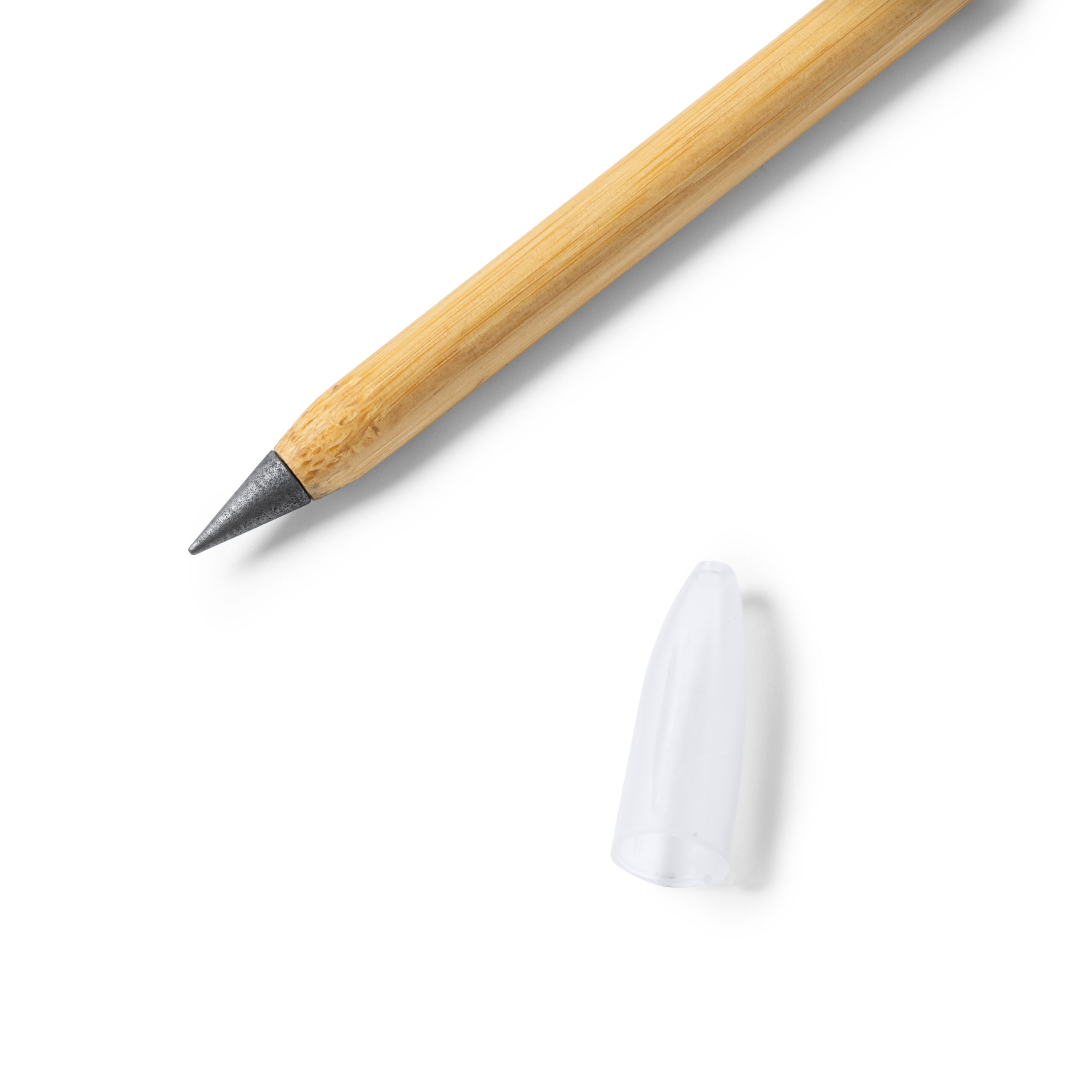 Fantástico lápiz infinito con cuerpo de bambú. Punta de grafito de escritura infinita reemplazable con capucha transparente.