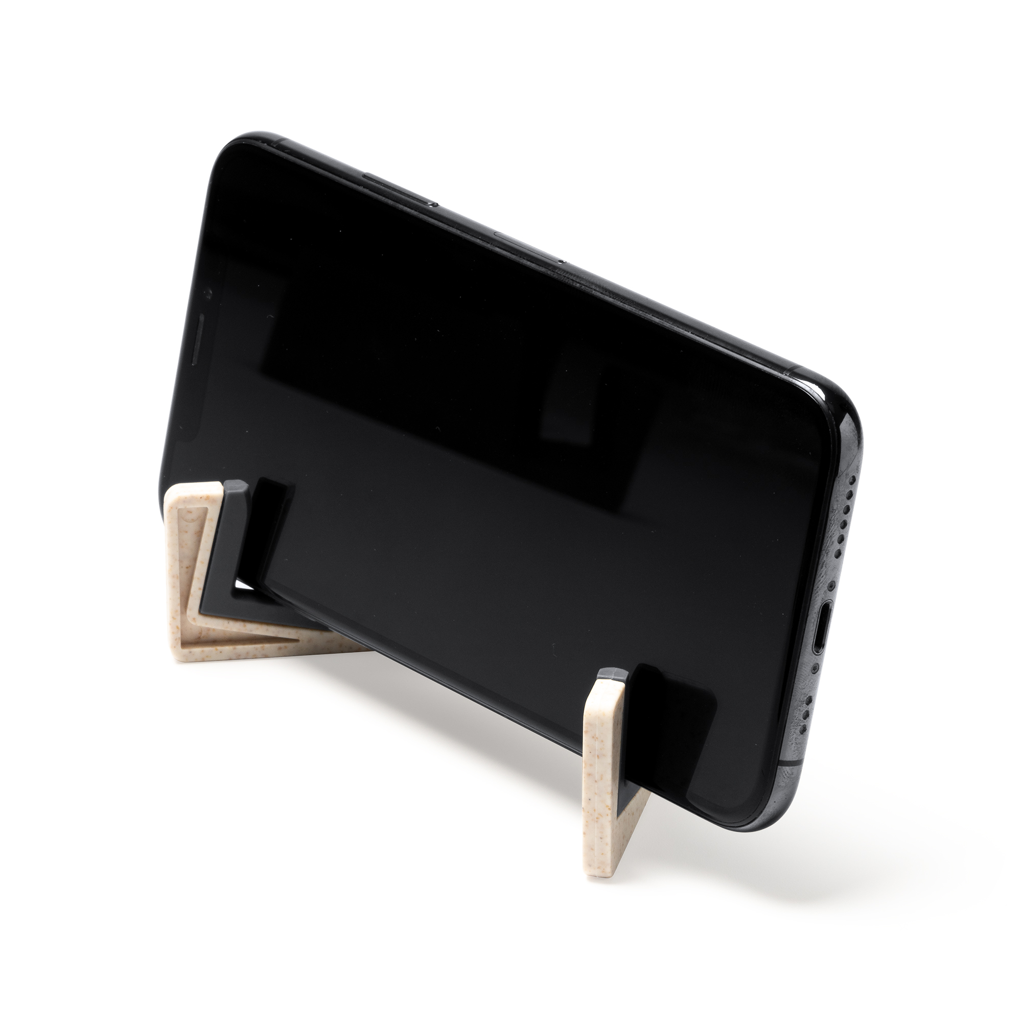 Soporte para móvil plegable realizado en fibra de trigo con bordes superiores antideslizantes. El soporte perfecto para ver lo que desees de una manera más cómoda.