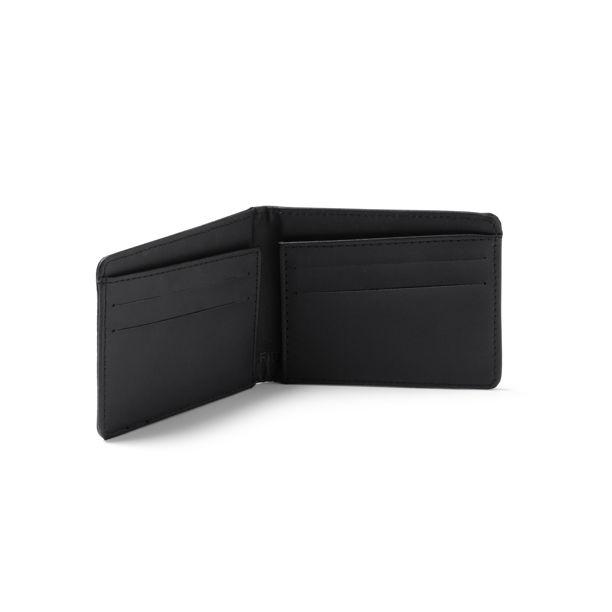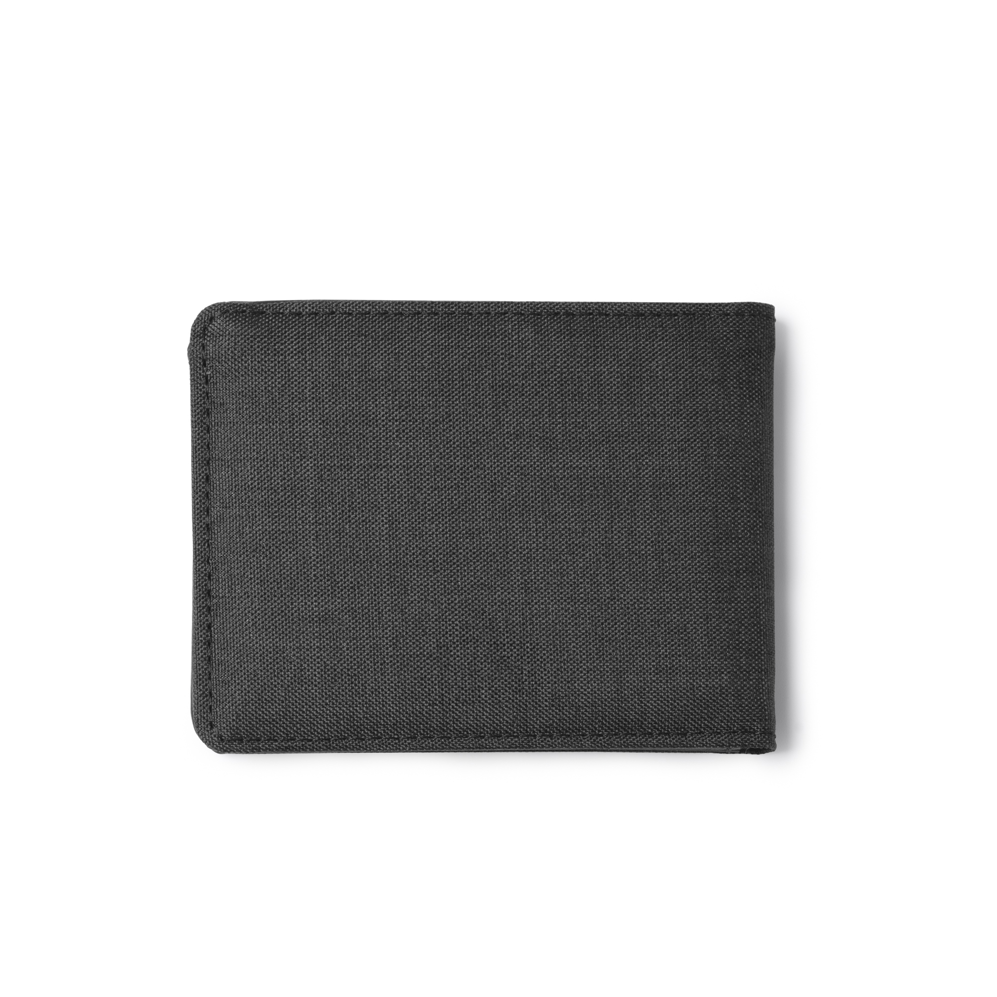 Tarjetero billetero realizado en políester reciclado RPET en acabado vigoré con sistema de seguridad RFID. Cuenta con 6 compartimentos para tarjetas en el interior.