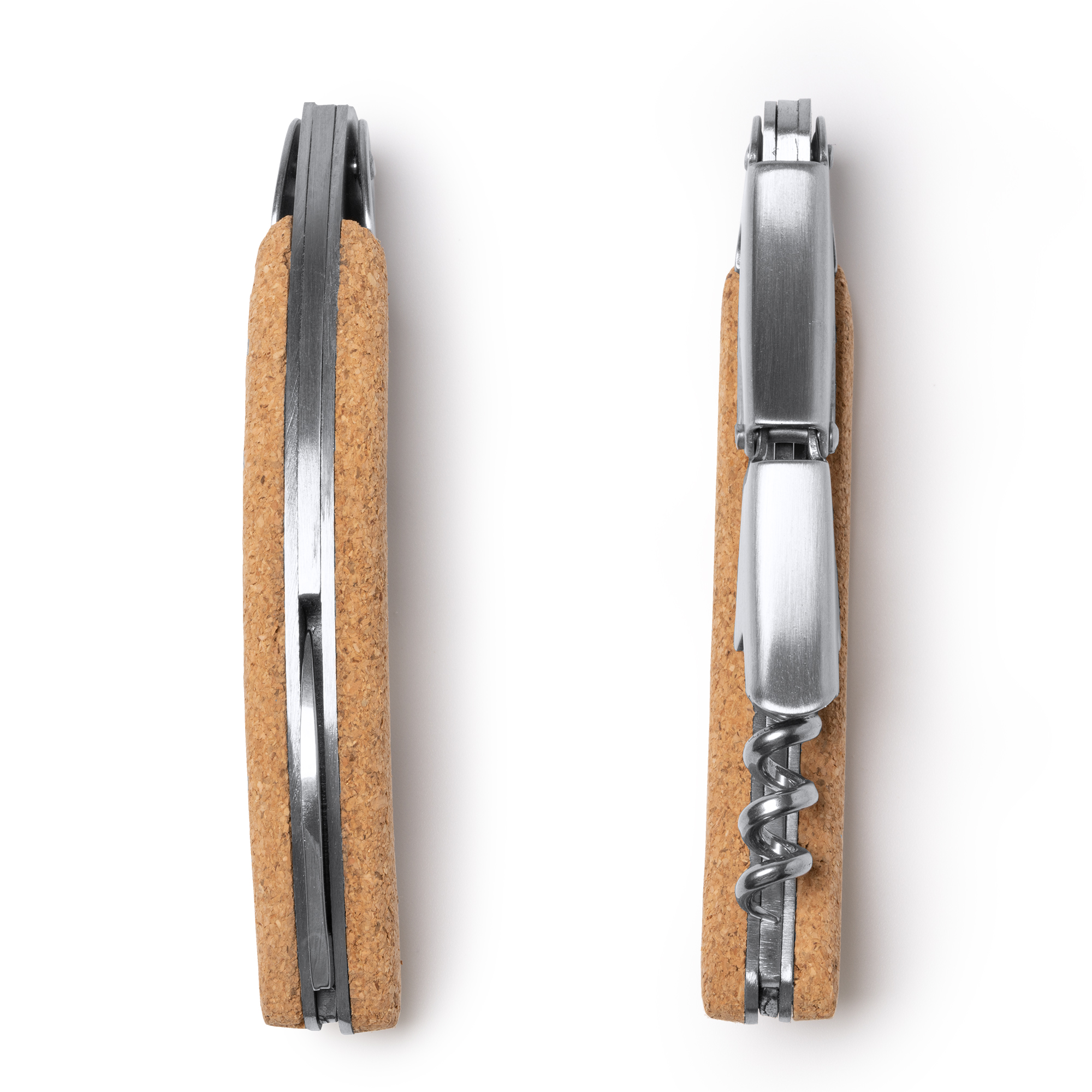 Sacacorchos de acero inoxidable estilo clásico con mango en corcho. Este diseño ofrece durabilidad y resistencia, asegurando, gracias a su mango de corcho, un agarre cómodo y seguro. Cuenta con mecanismo de doble palanca facilita el proceso de apertura, minimizando el esfuerzo.