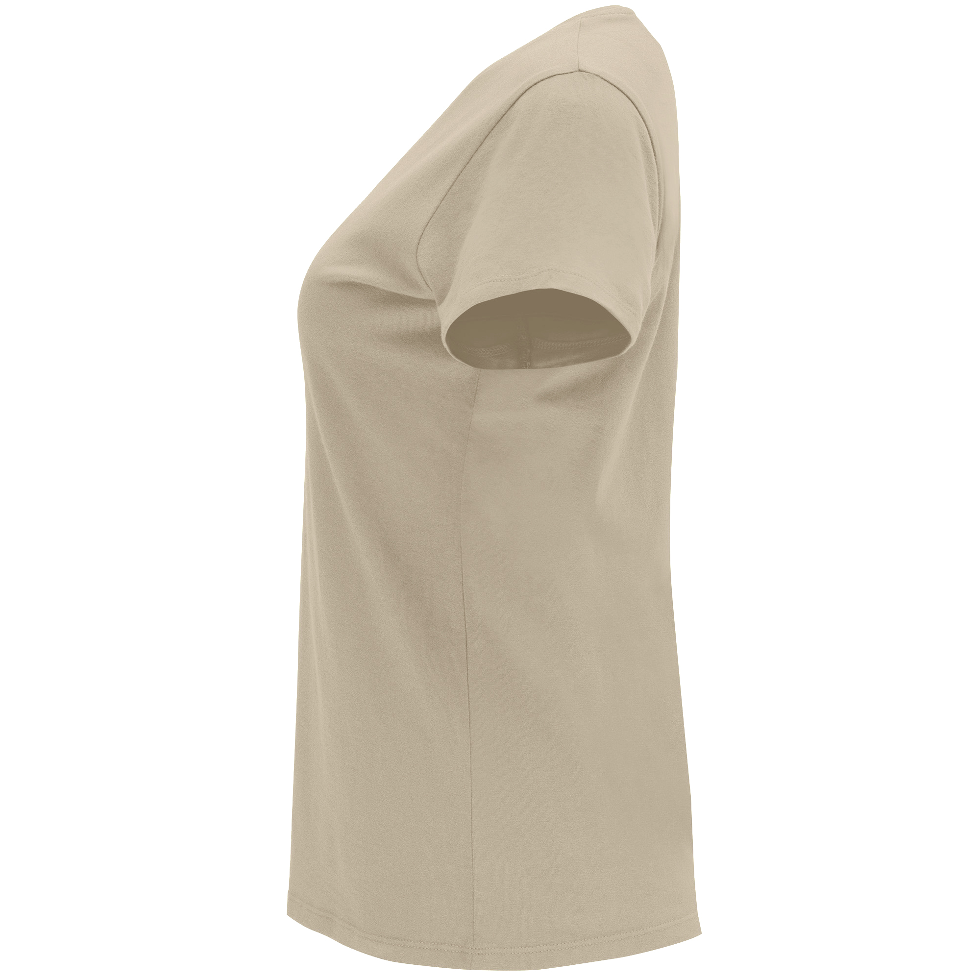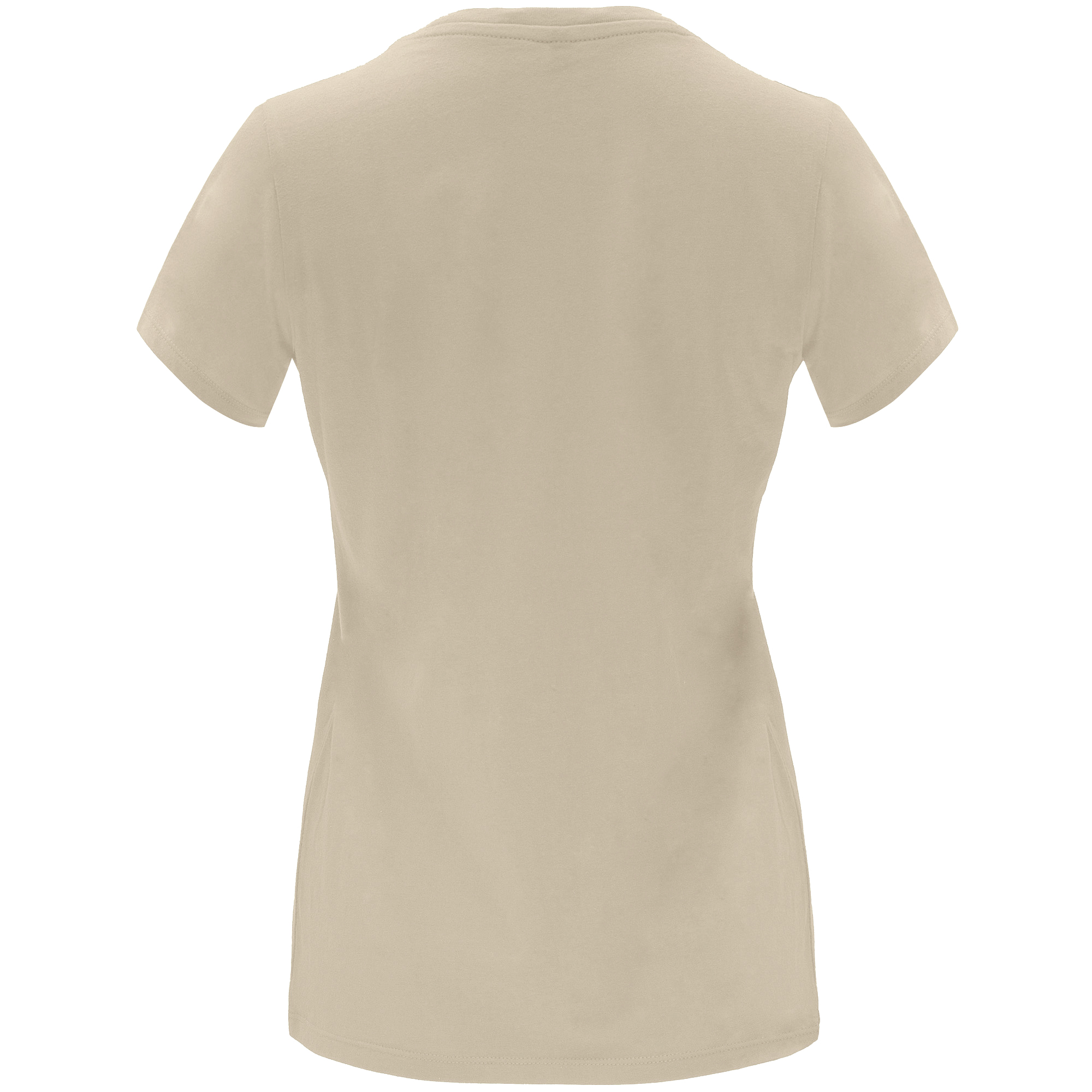 Camiseta de manga corta entallada en cintura. Cuello redondo en canalé 1×1. Cubrecosturas en cuello del mismo tejido.