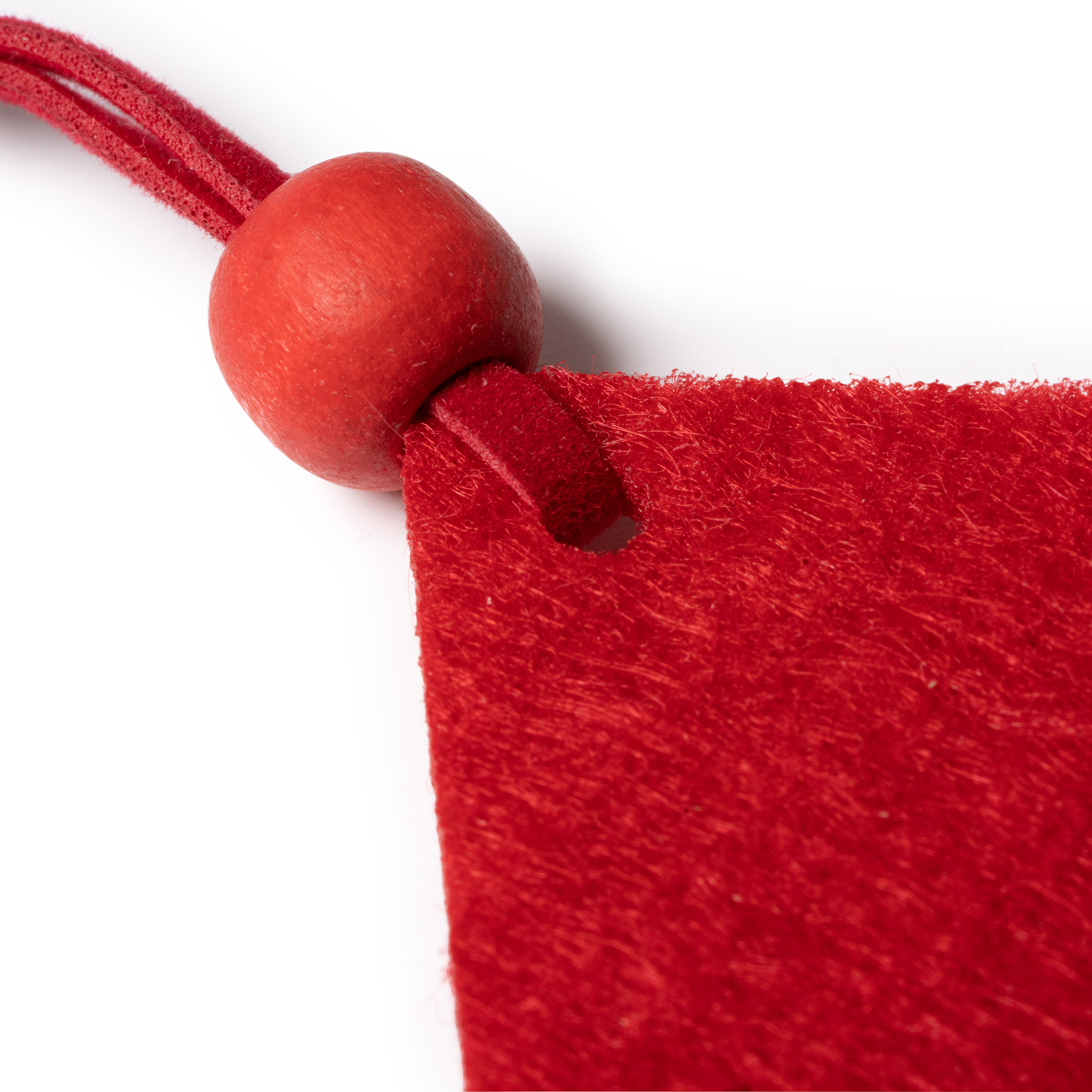 Set de adornos navideños de fieltro, en el que se incluyen tres diseños: estrella, árbol y reno. Las tres figuras se presentan con un cordel rojo y una cuenta del mismo color en su extremo.