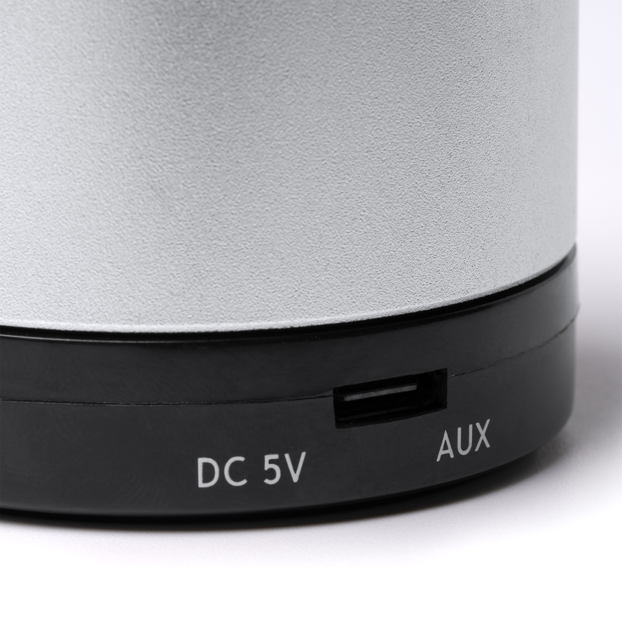 Altavoz inalámbrico fabricado en aluminio reciclado y cuerpo en distintos colores.