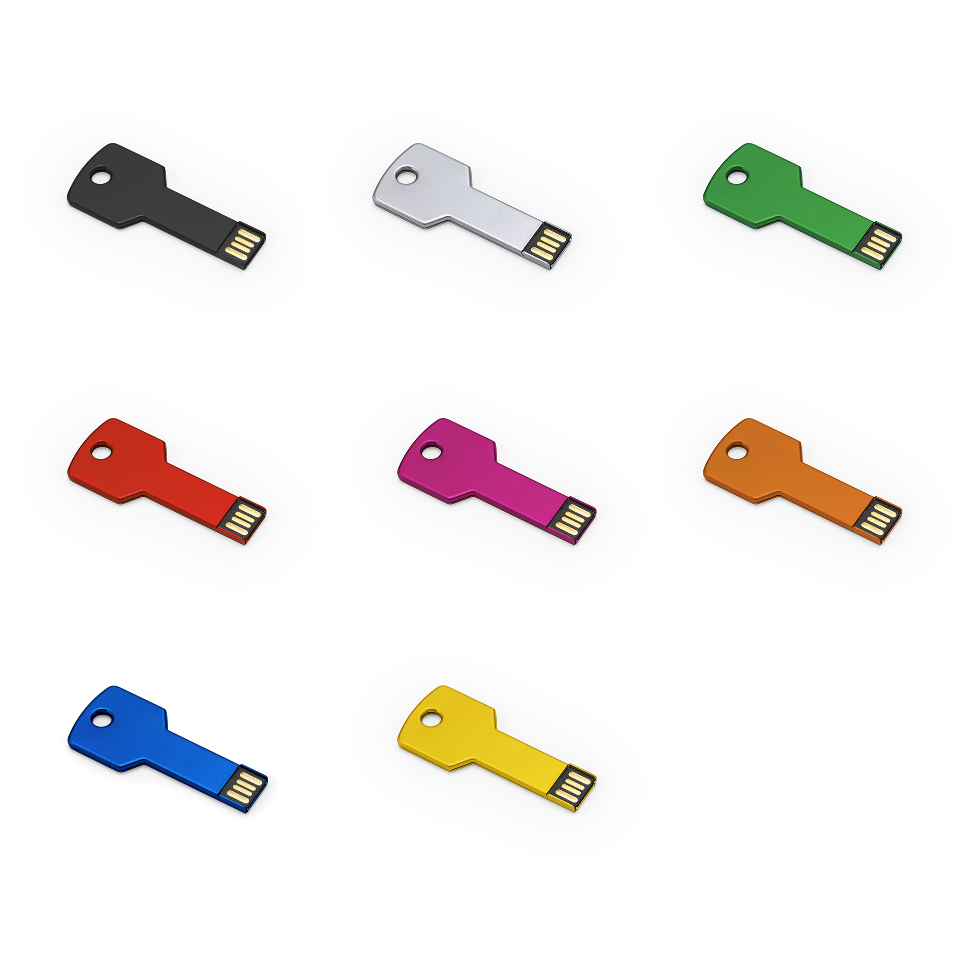 Memoria USB 2.0 de aluminio con diseño extraplano en forma de llave. Dispone de una capacidad de 16 GB. Presentación en estuche metálico con ventana.