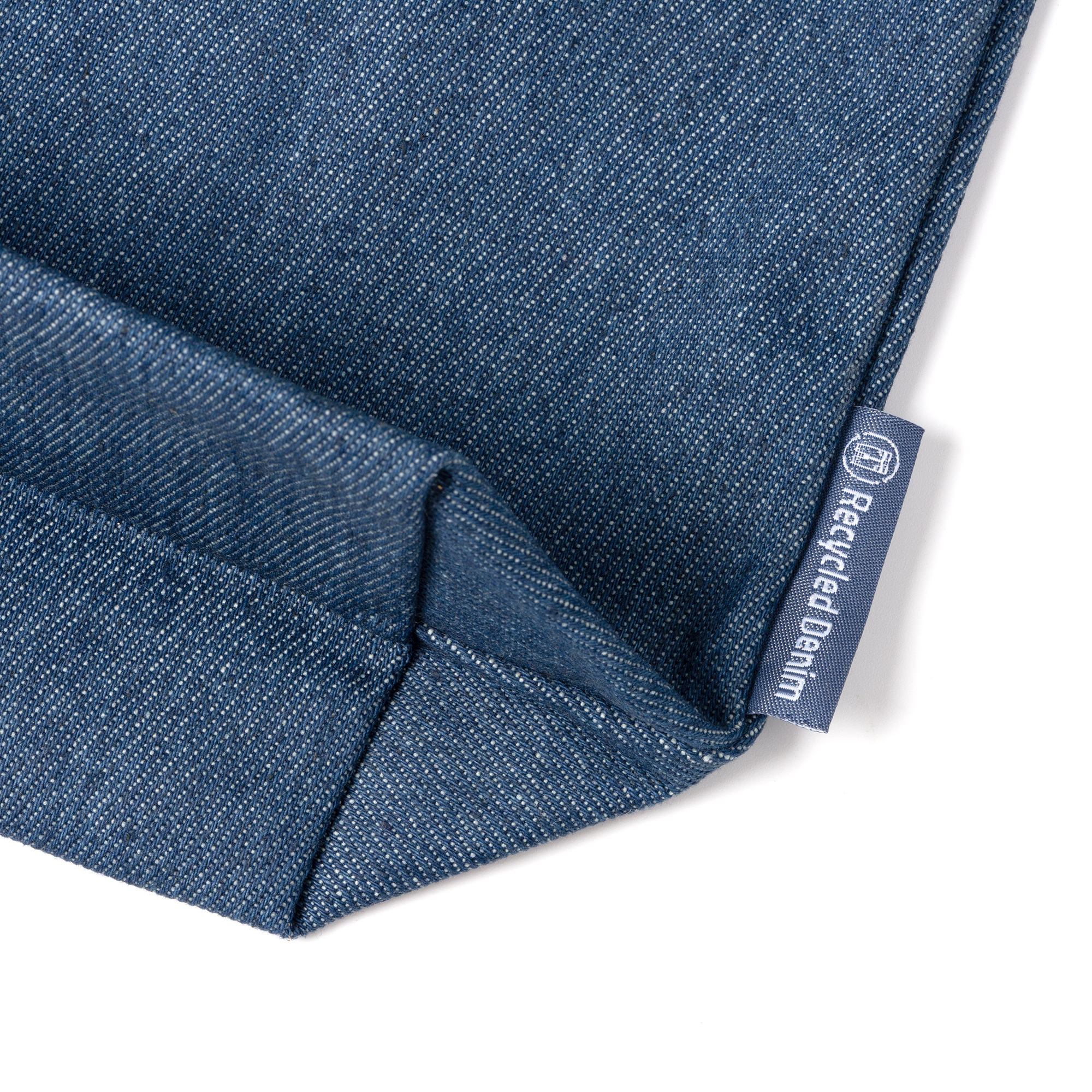 Bolsa realizada en tejido vaquero reciclado con fondo con asas largas de 70 cm.