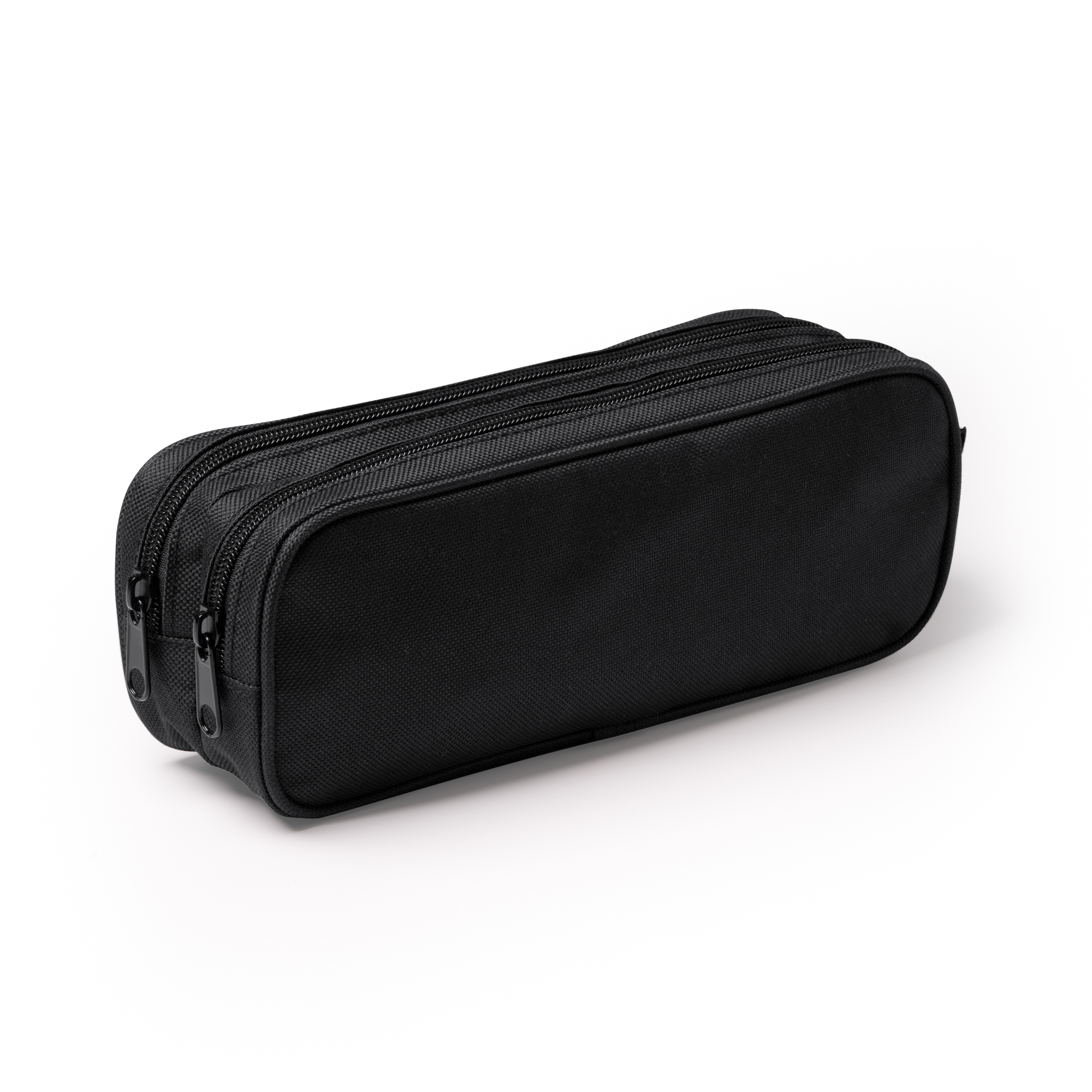 Estuche elaborado de políester reciclado RPET 300D con doble compartimento y cierre de cremallera.