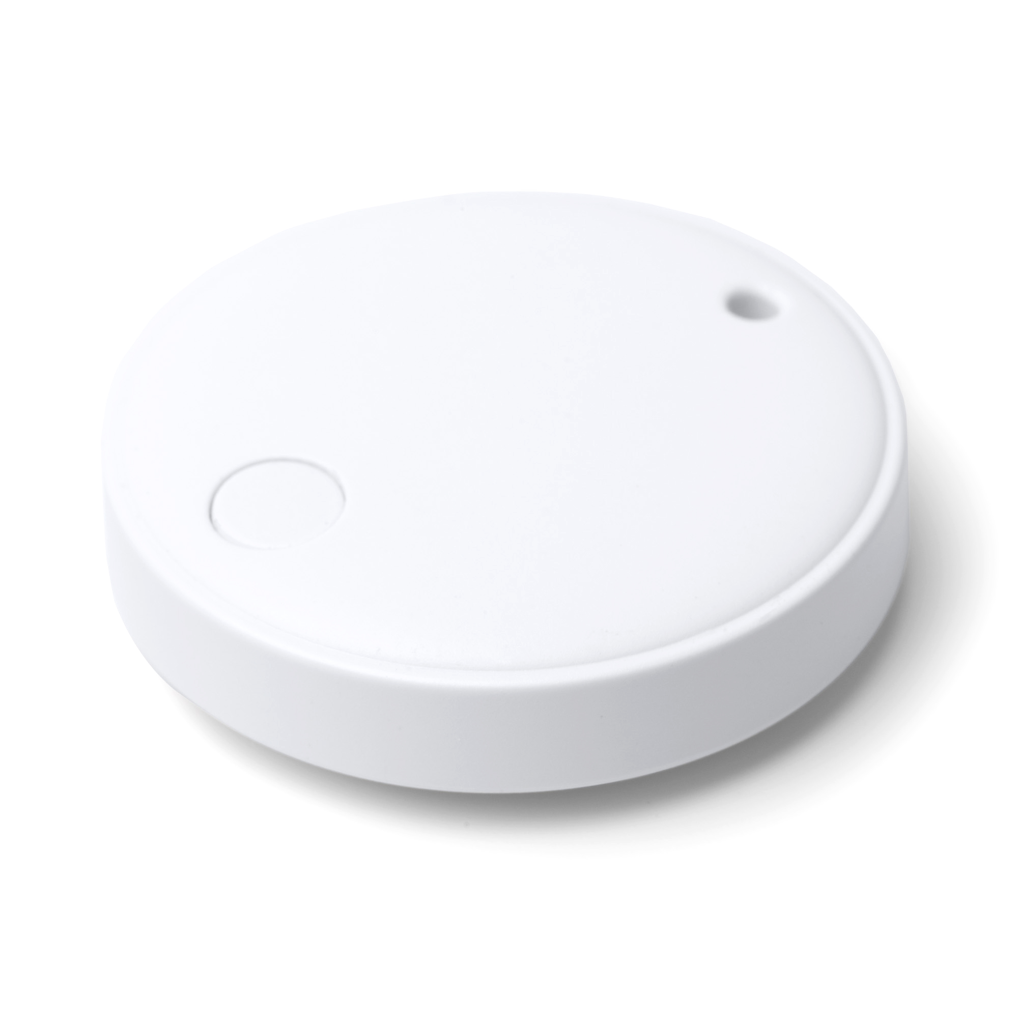 Dispositivo localizador anti pérdida resistente al agua elaborado en ABS con llavero incluido. Compatible con dipositivos iOS y Android mediante aplicación móvil a través de conexión Bluetooth. Funciona mediante pila y una señal acústica. Incluye anilla metálica con cinta de transporte.