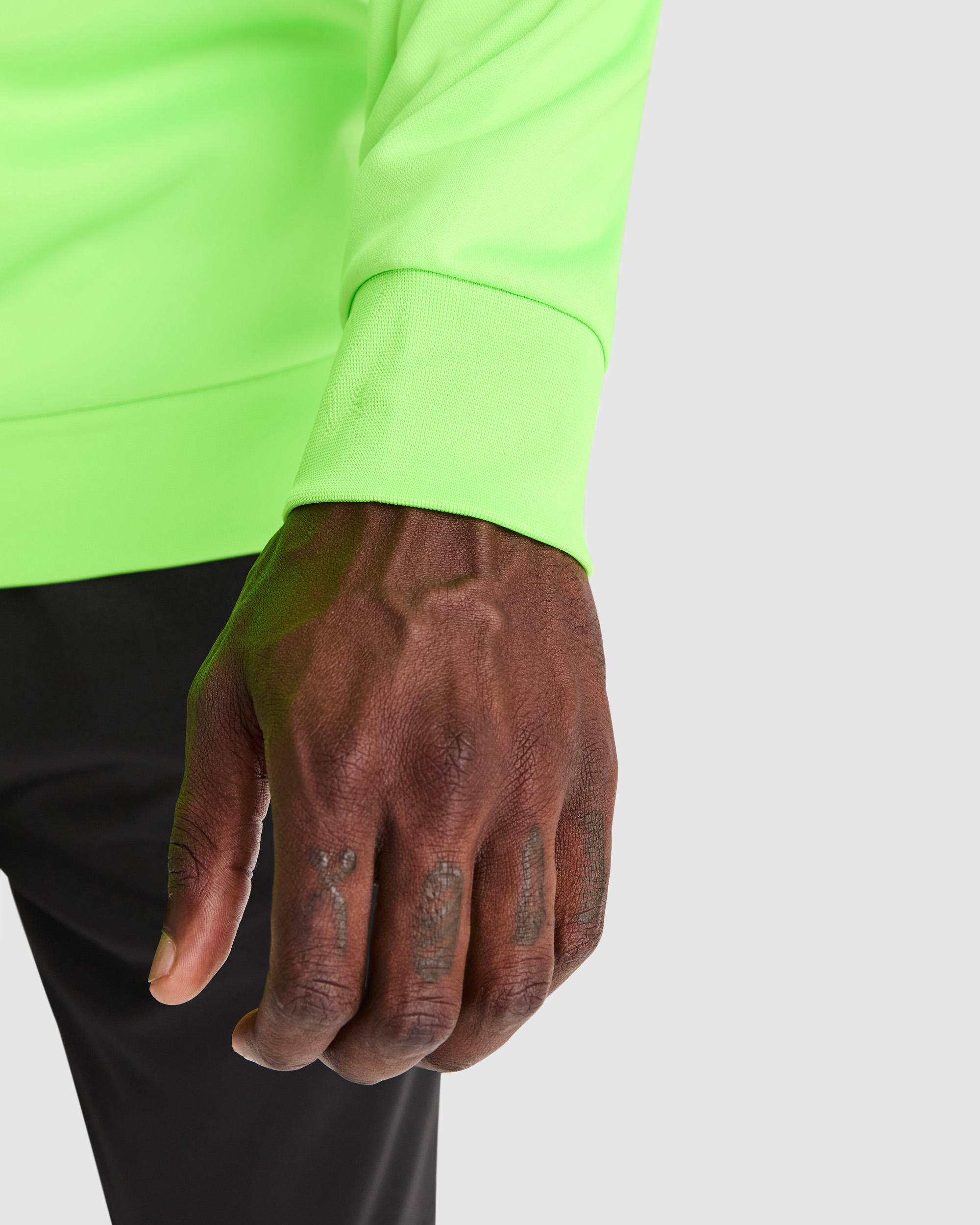 Chaqueta deportiva manga ranglán. Media cremallera perchada. Pieza trasera en el cuello y puños de canalé 1×1. Pack con pantalón neapolis.