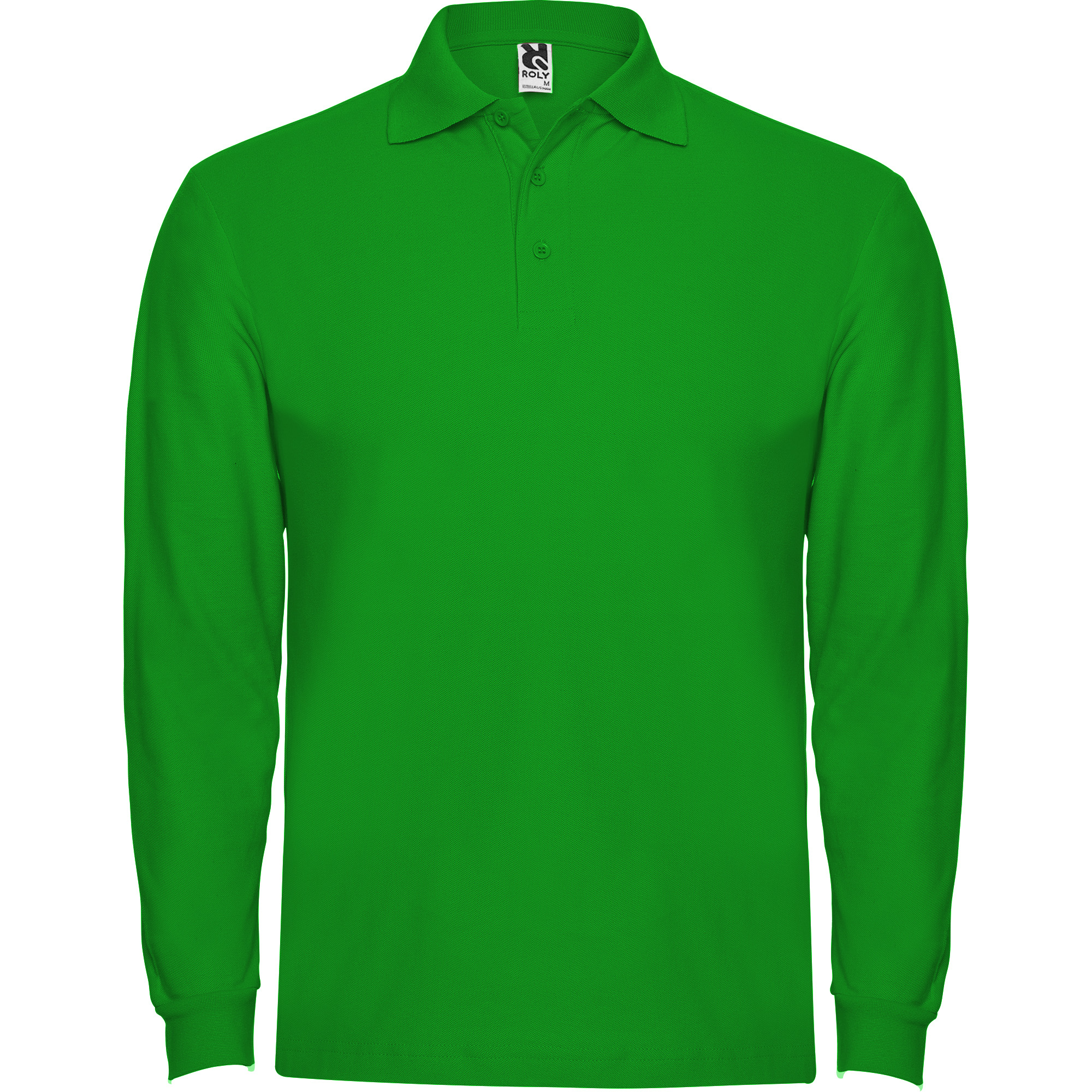 Polo de manga larga de algodón. Punto piqué. Cuello y puños tejidos 1×1. Tapeta de 3 botones. Cubrecosturas en cuello del mismo tejido. Bolsillo opcional.