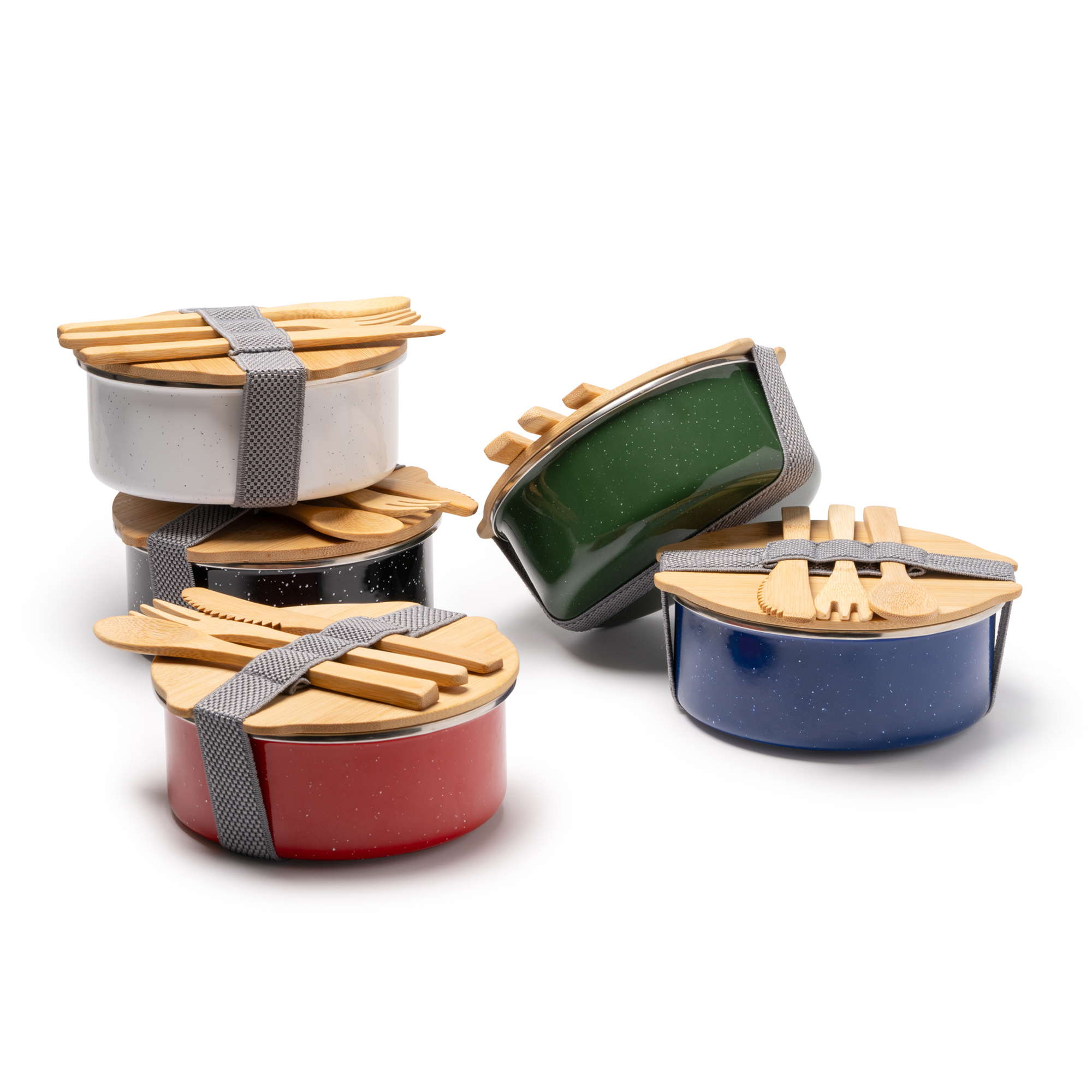 La fiambrera metálica cuenta con un recubrimiento cerámico duradero y una tapa de bambú asegurada con una cinta elástica para mantener los alimentos seguros. Incluye un práctico set de cubiertos de bambú. Con capacidad de 750 ml, es ideal para llevar almuerzos saludables y sostenibles. Este diseño combina elegancia y funcionalidad, perfecto para usar en la oficina, el colegio o cualquier lugar donde se necesite una comida práctica.