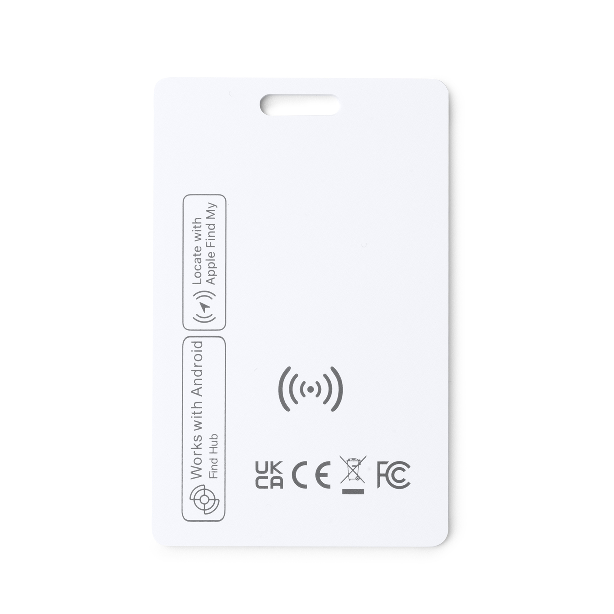 Dispositivo localizador anti pérdida resistente al agua en formato tarjeta elaborado en ABS. Compatible con dispositivos iOS y Android mediante aplicación móvil a través de conexión Bluetooth. Cuenta con función de búsqueda con señal acústica. Este dispositivo es recargable mediante cargadores de carga inalámbrica.