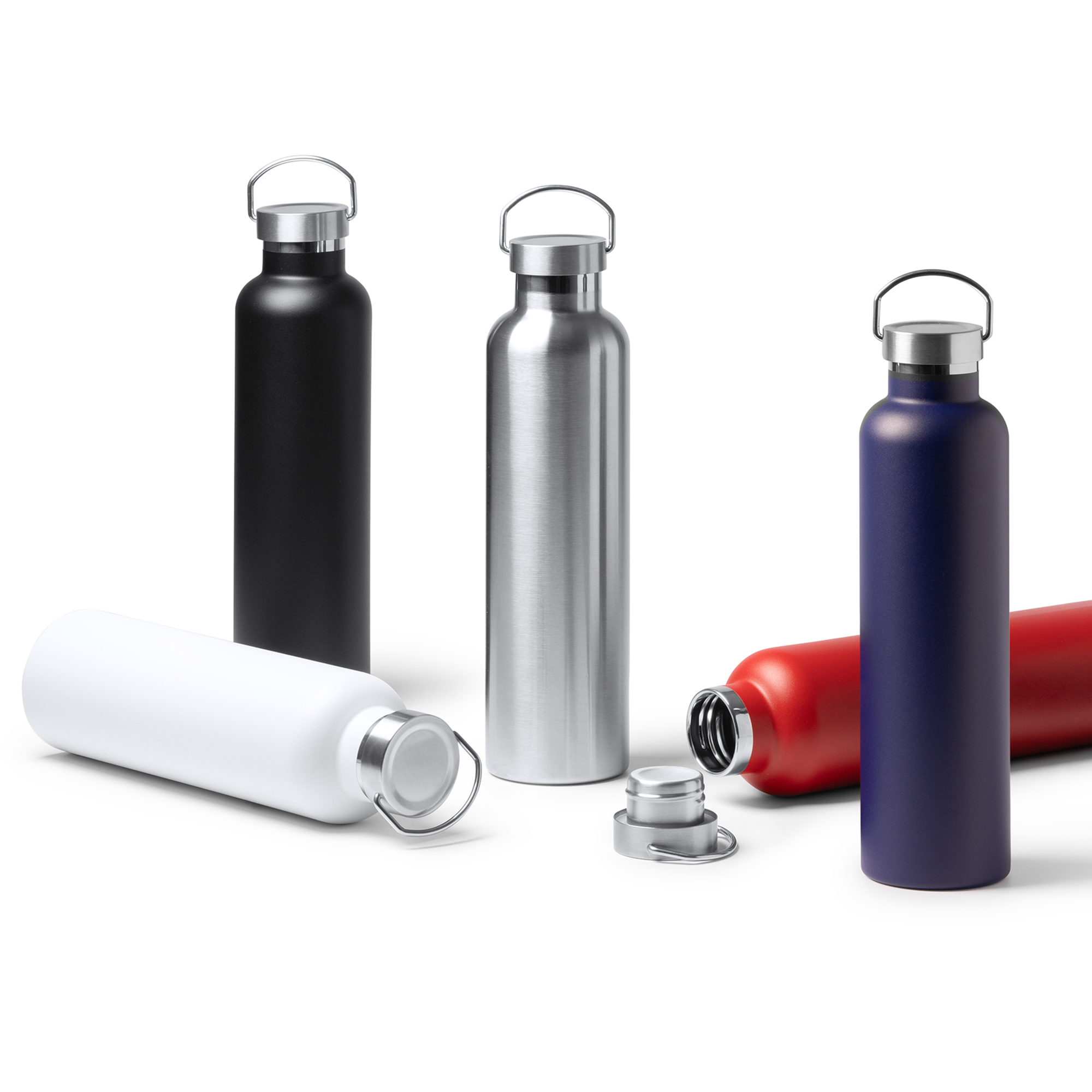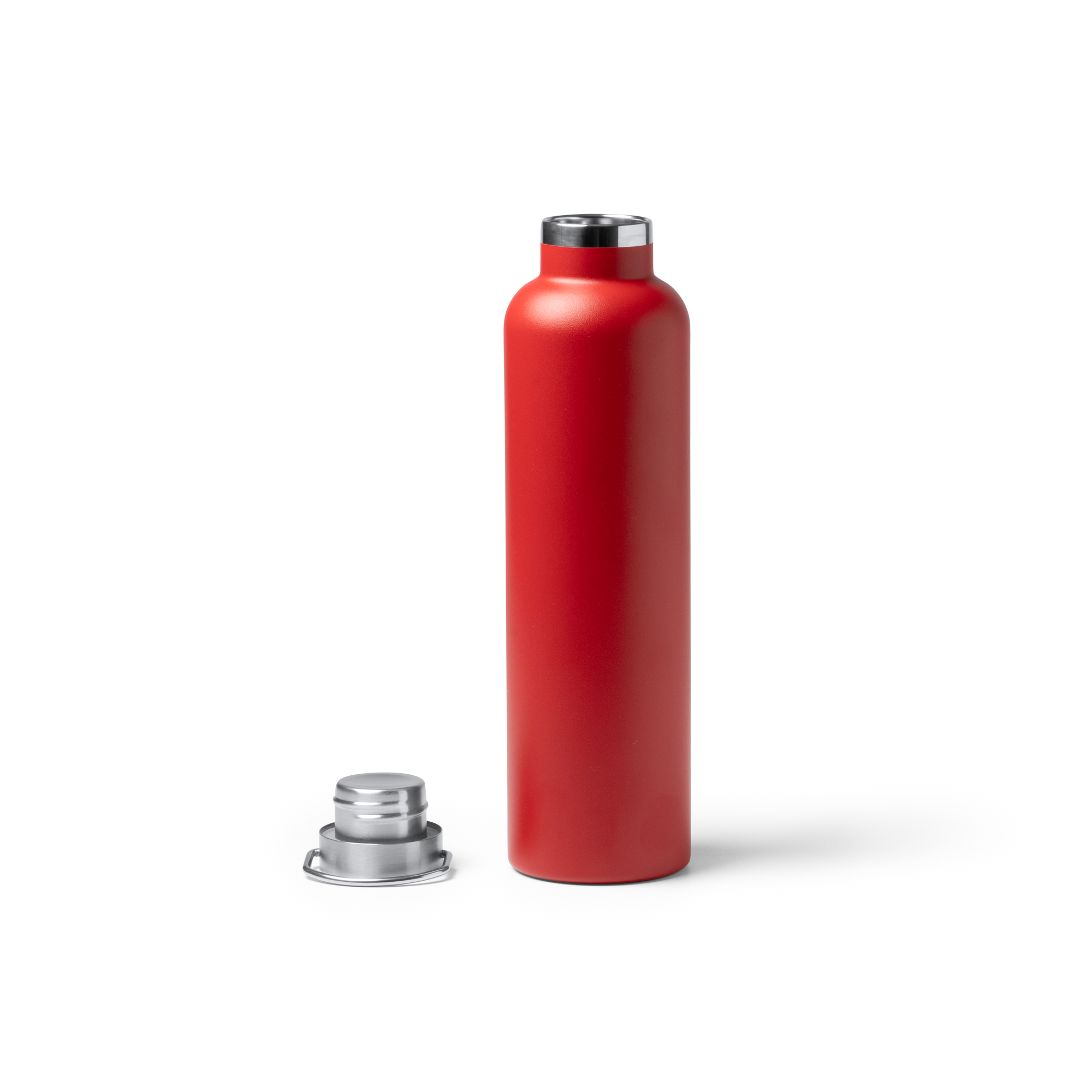 Bidón térmico de acero inoxidable 304 con cuerpo a color en acabado mate. Con capacidad para 1 L. Con asas de transporte integradas en el tapón.
