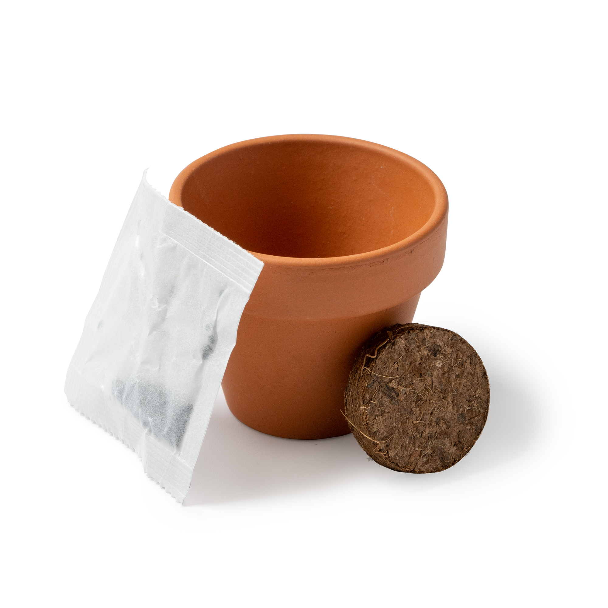 Macetero de terracota con semillas de girasol. Incluye sustrato. Fabricado en la UE.