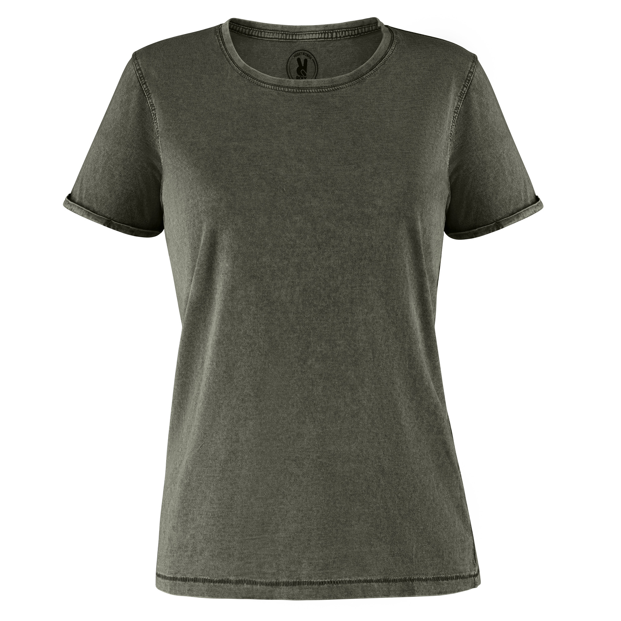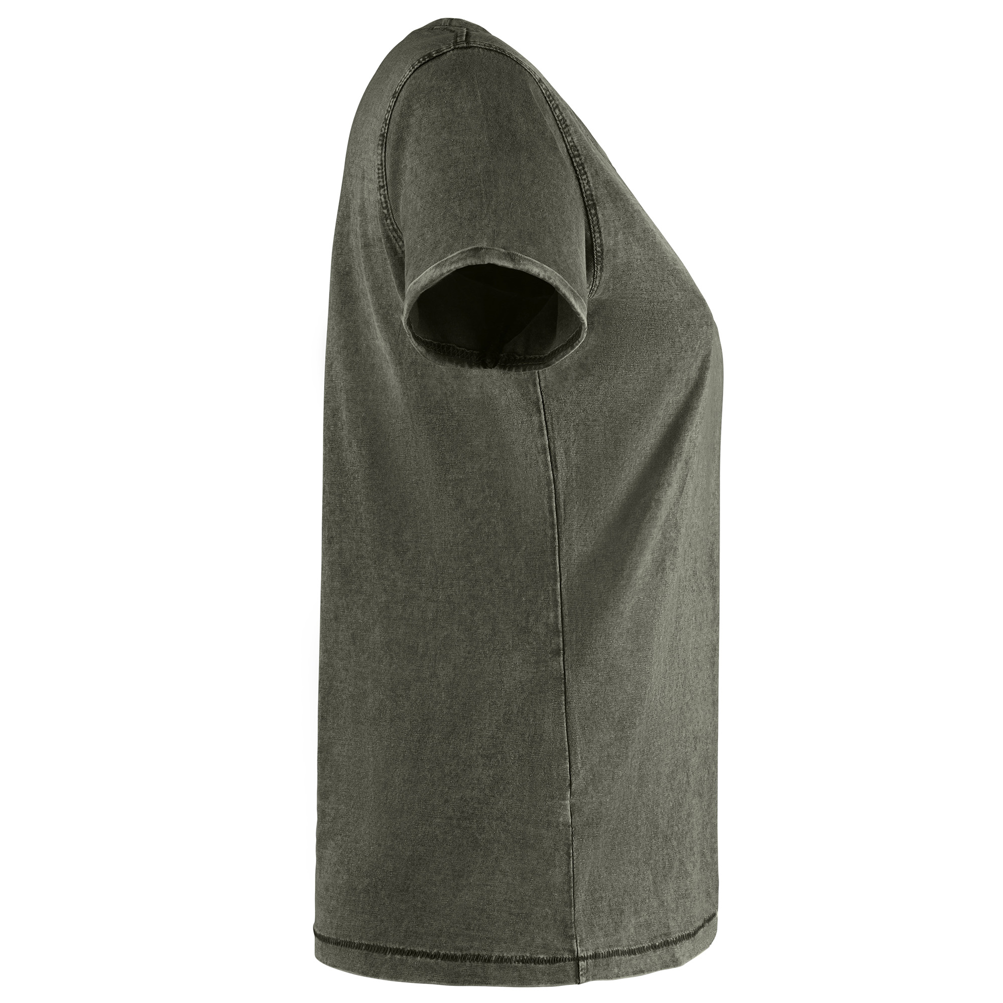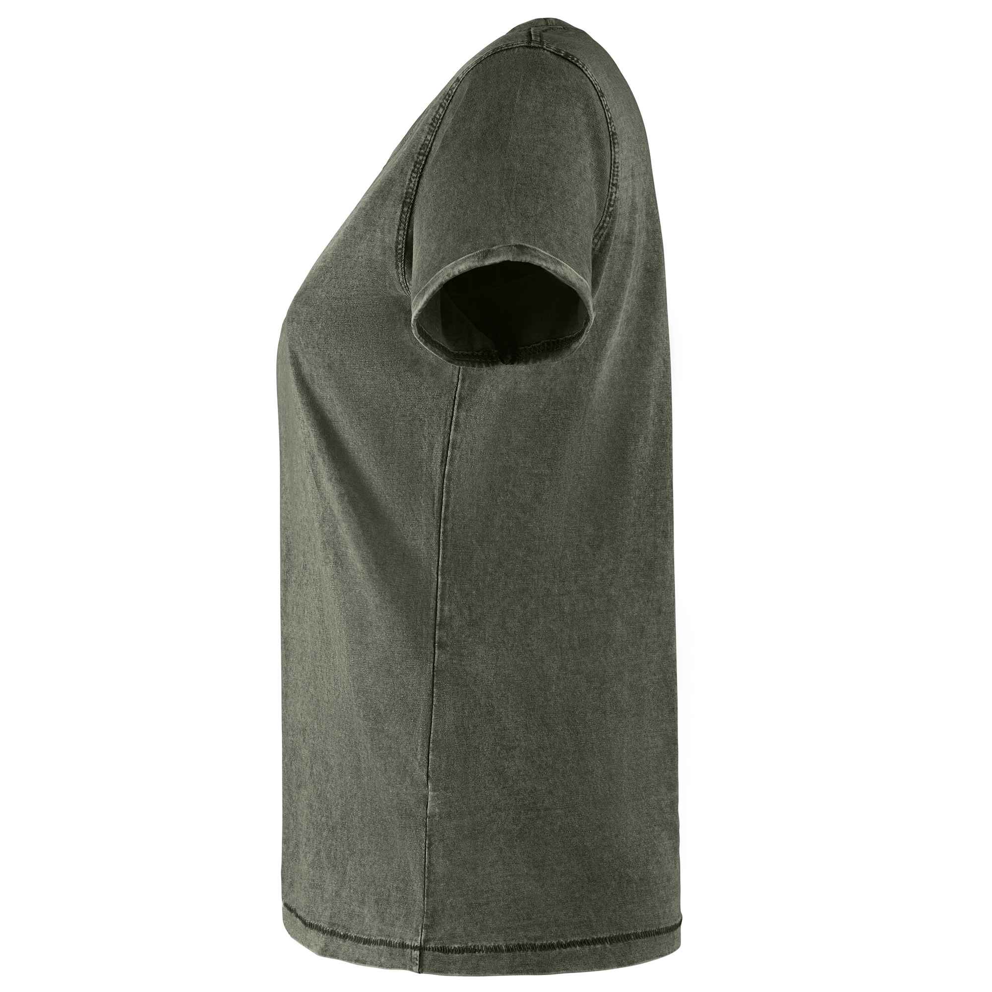 Camiseta de manga corta ligeramente entallada en cintura efecto lavado. Algodón peinado. Cuello redondo en canalé 1×1. Cubrecosturas en cuello del mismo tejido. Costuras dobles en laterales y sisas. Costuras decorativas en mangas y bajo y detalle de costuras de refuerzo en dobladillos.