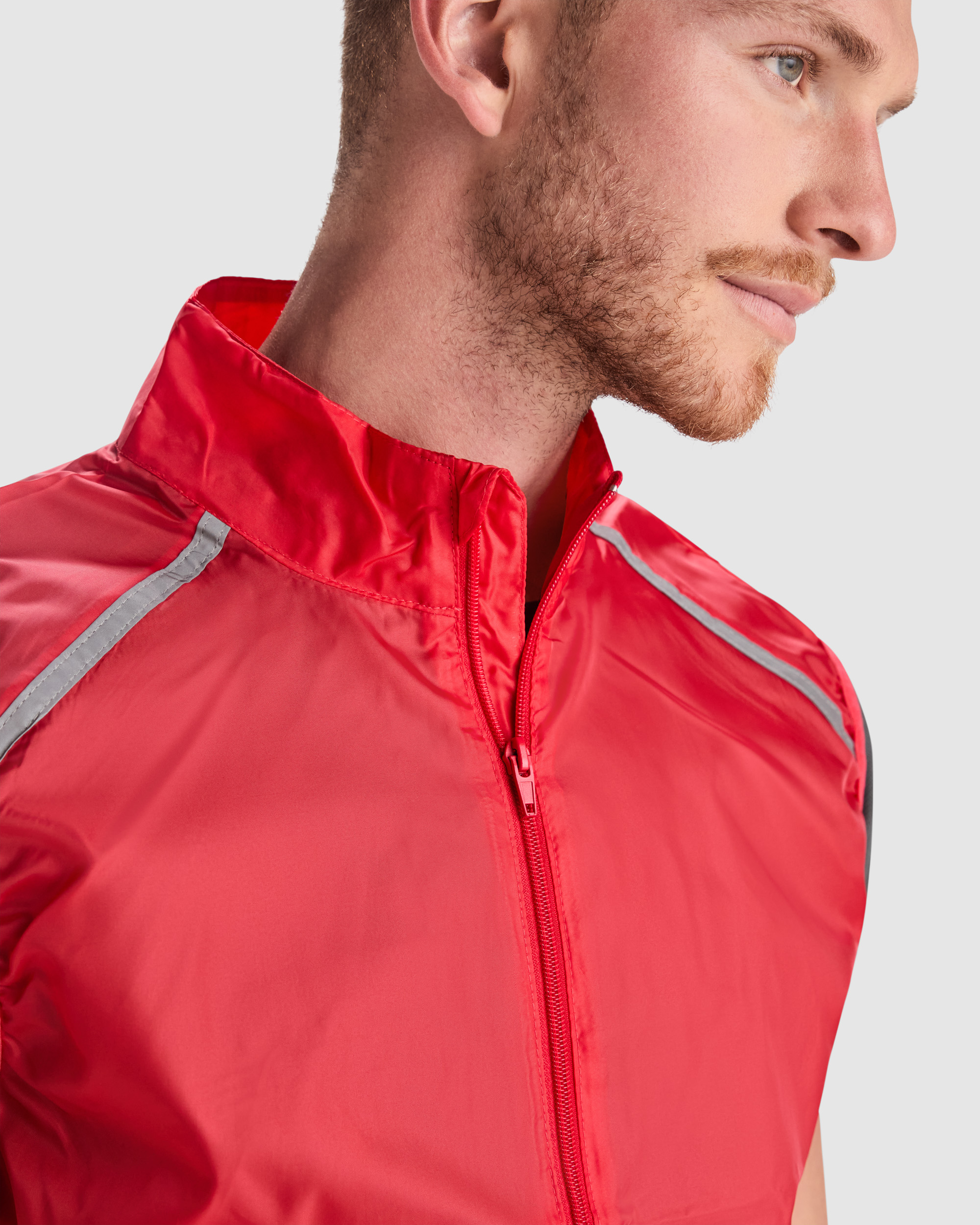 Chaleco cortavientos ultraligero. Cremallera frontal al tono. Protector de barbilla. Espalda en tejido de malla transpirable. Bandas reflectantes en el frontal y en espalda de los hombros como puntos de visibilidad aumentada. Sisas y bajo con ribete elástico al tono. Bolsillo lateral izquierdo para plegado.