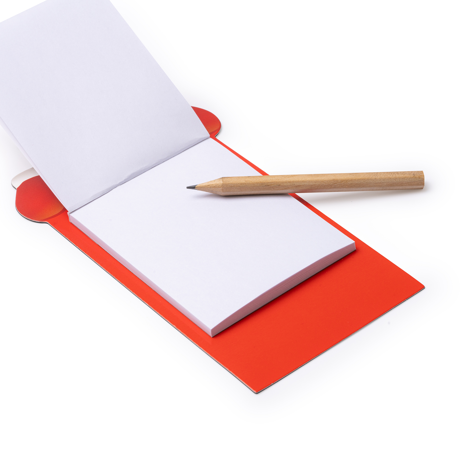 Imán con motivo navideño de Papa Noel. Incluye 45 notas de papel blanco liso y lápiz. Con imán en color negro.