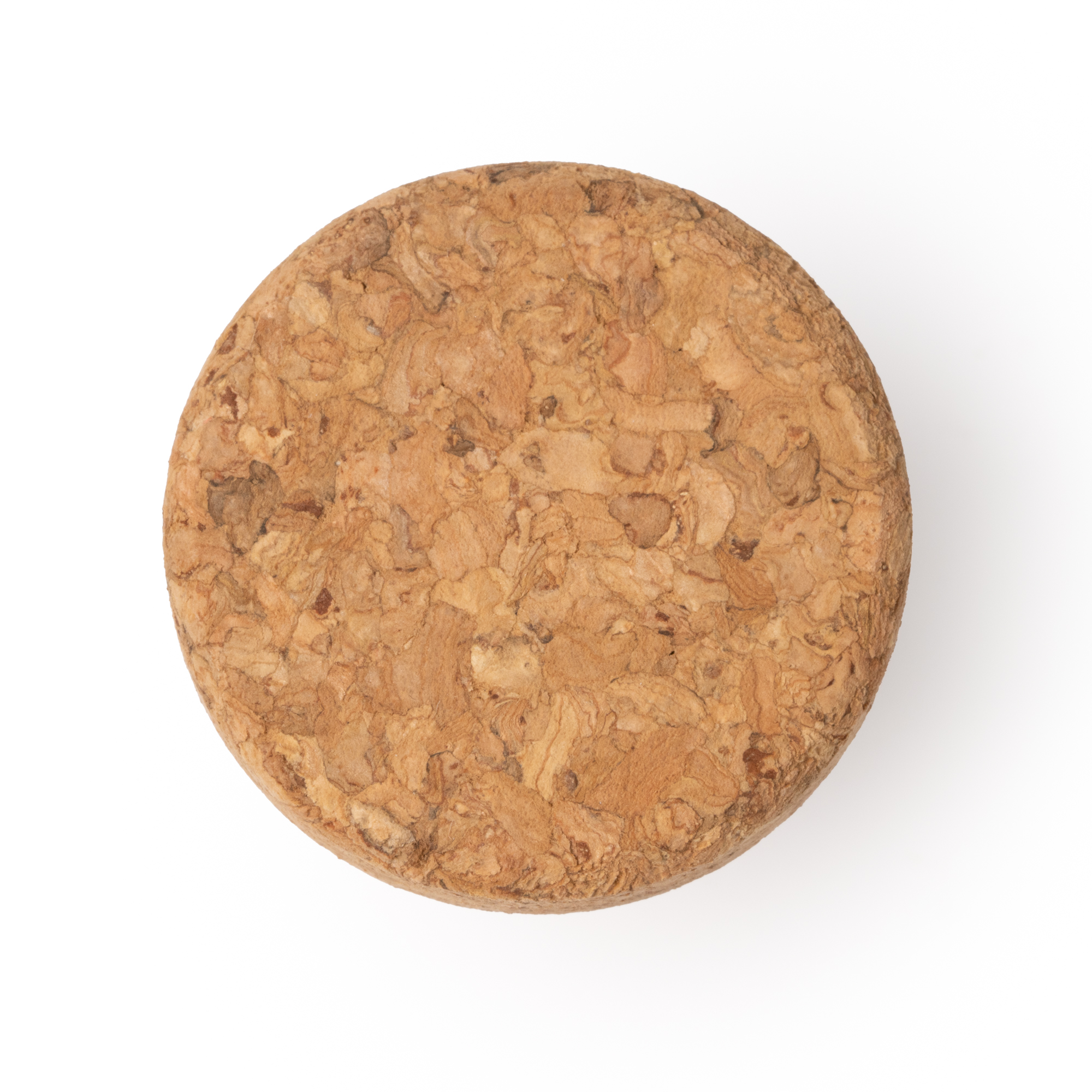 Tapón para botellas de vino realizado en corcho. Superficie plana idónea para realizar marcaje.