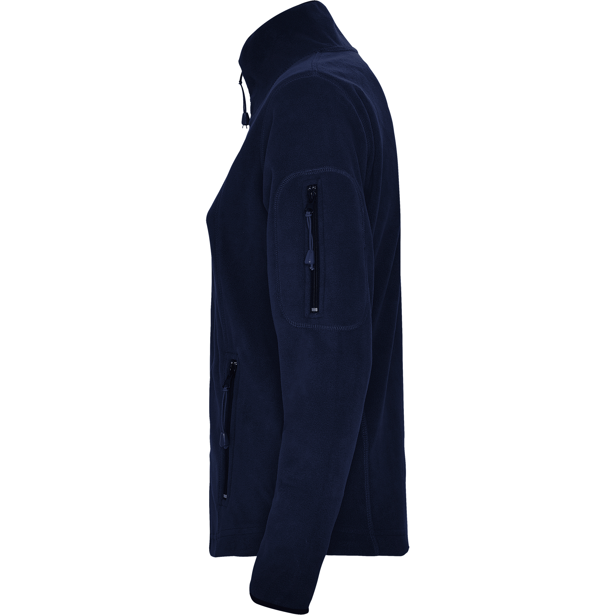 Sudadera polar para deporte al aire libre, con cuello alto y manga larga con ribetes en contraste. Bolsillo con cremallera en manga izquierda y cremallera central, ambas en contraste. Costuras en lateral y pecho. Codera en el mismo tejido.