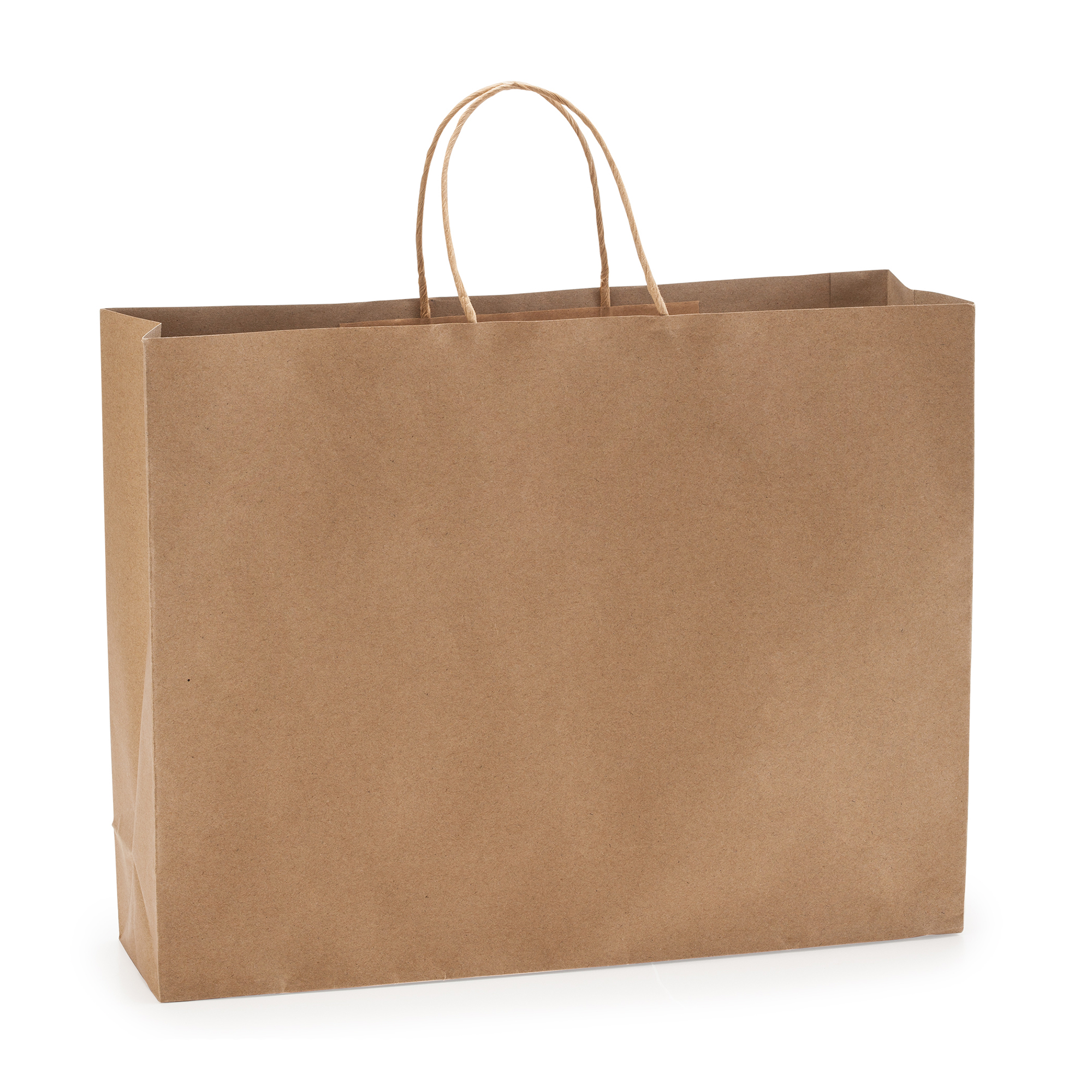 Bolsa de papel en acabado natural 110 g/m². Asa cortas reforzadas en diseño rizado.