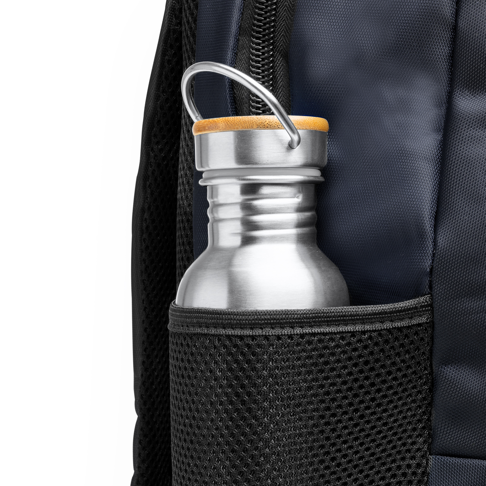 Mochila realizada en nylon 600D. Tiras y espalda acolchadas que harán de manera más cómoda el transporte de la misma. Incluye compartimento interior acolchado ideal para portátil. Mochila idónea de uso diario en la oficina o bien para realizar viajes.