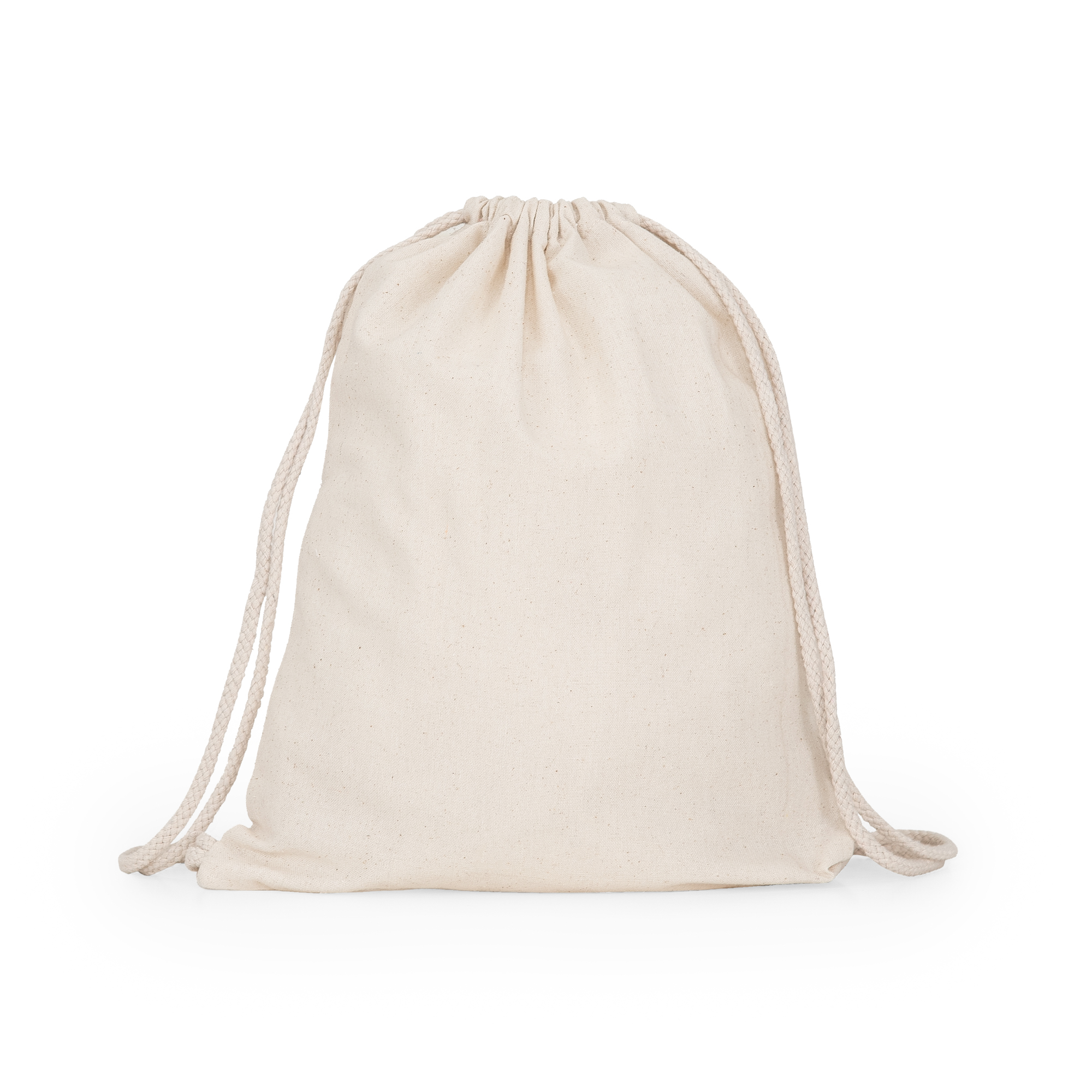 Mochila multiusos de algodón de 140 g/m² con cordones de ajuste a la espalda a tono, de 8 mm de grosor.
