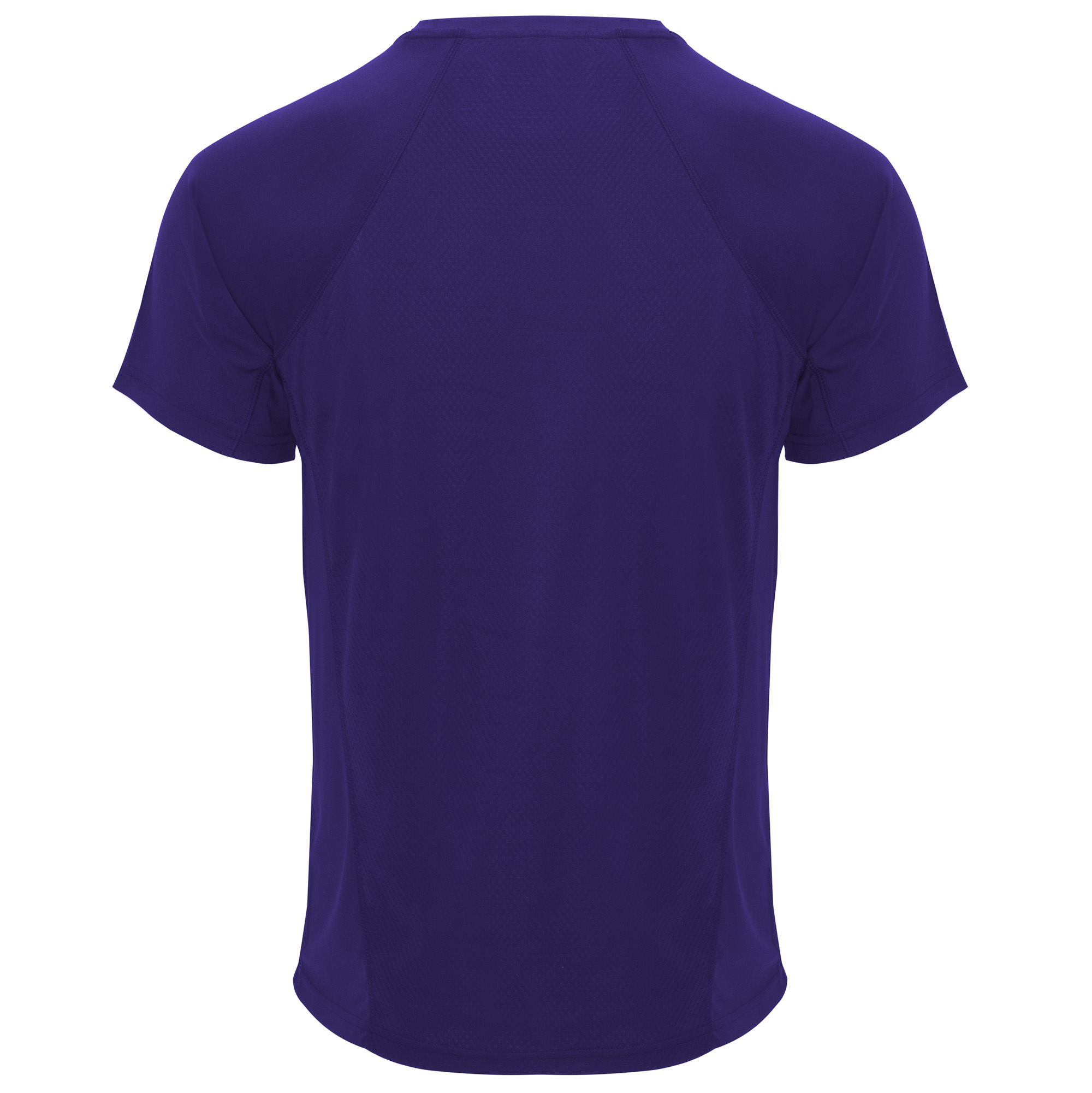 Camiseta técnica manga ranglán unisex transpirable. Combinación de tejidos. Cuello redondo del mismo tejido al tono. Cubrecosturas mismo tejido en amarillo fluor.