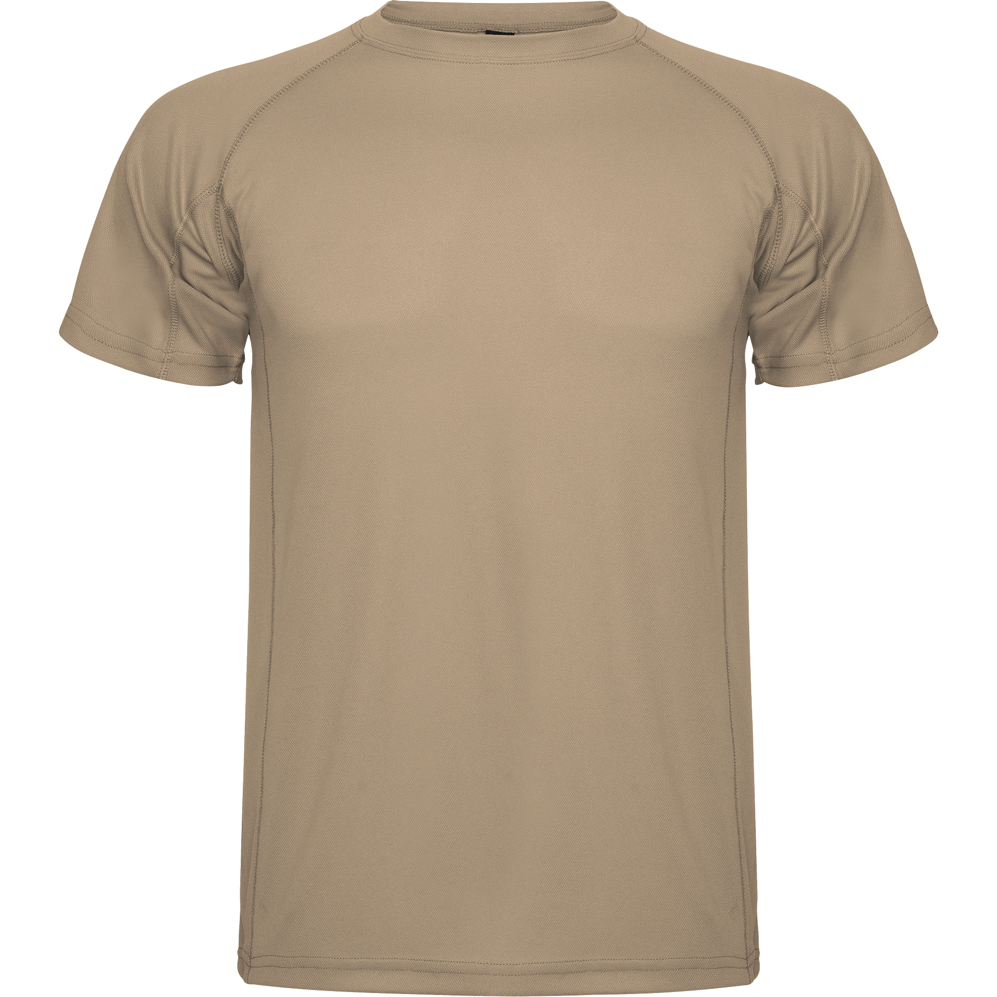 Camiseta técnica manga ranglán transpirable. Roly Control Dry. Paneles laterales. Cuello redondo y cubrecosturas del mismo tejido al tono (Certificado UV).