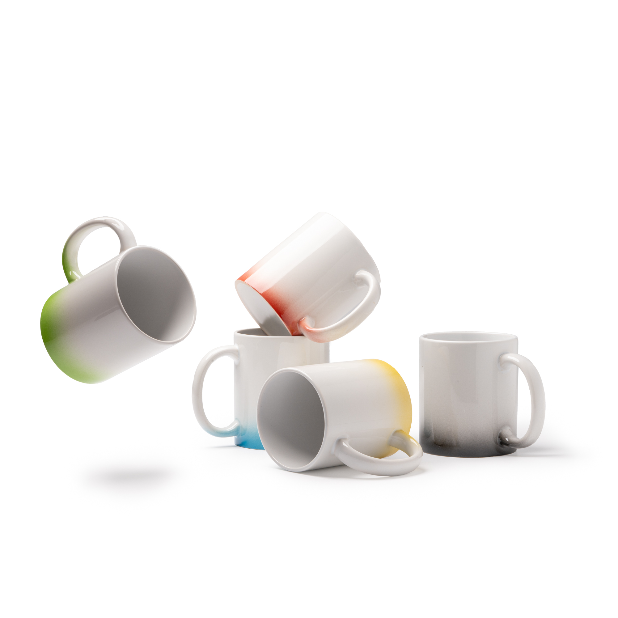 Taza de cerámica especial para sublimación. Capacidad para 350 ml. Cuenta con base a color con efecto degradado.