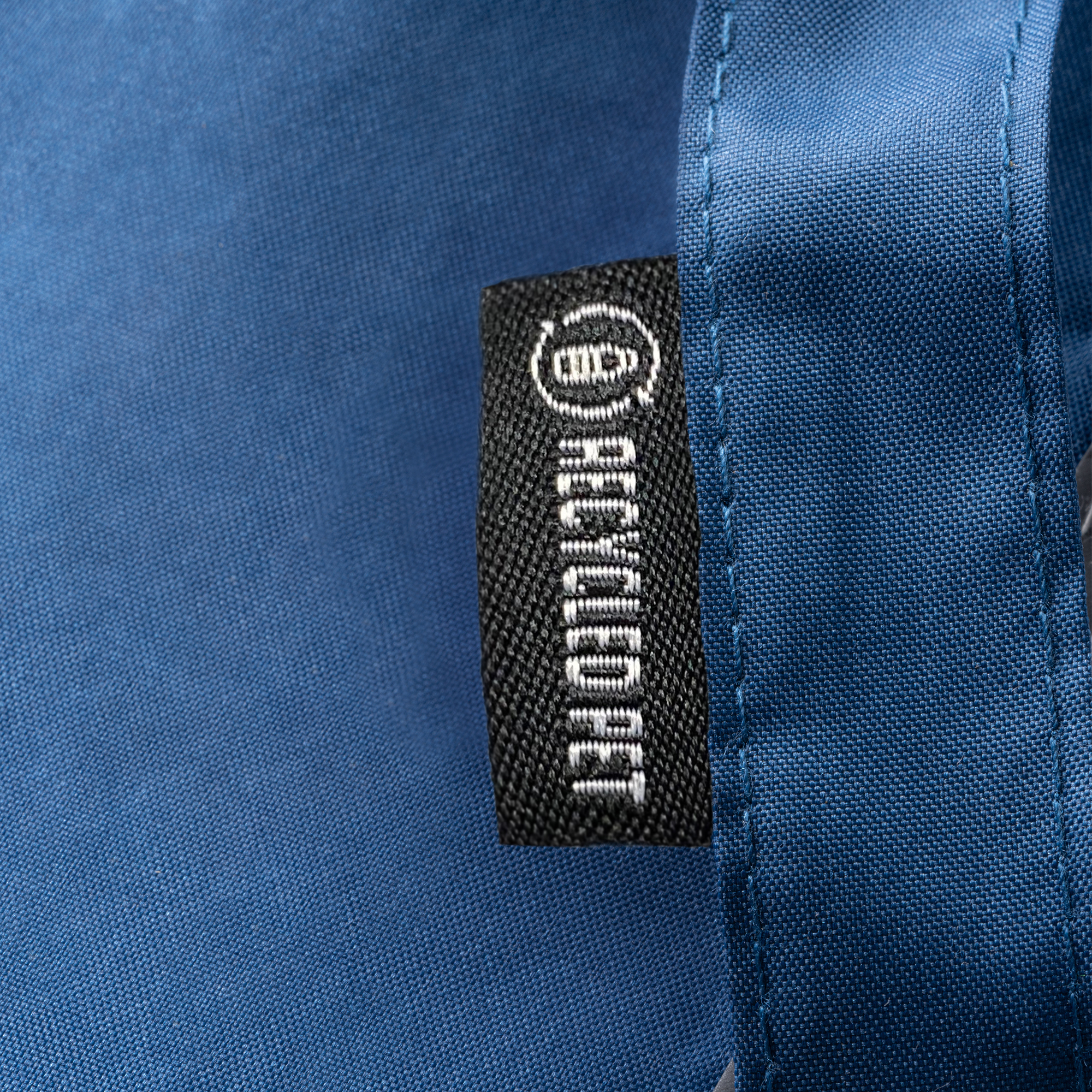 Paraguas realizado en RPET (poliéster reciclado) con tejido pongee 190T y acabado en bandas reflectantes, lo que le añade un elemento de seguridad. El tejido pongee 190T es duradero y repelente al agua. Cuenta con varillas de fibra de vidrio con sistema anti-viento, que ofrece una mayor resistencia y flexibilidad ante ráfagas de viento, con botón de apertura automática para facilitar su uso y un cierre con velcro para un almacenamiento seguro. Incluye una funda a juego para guardar el paraguas .