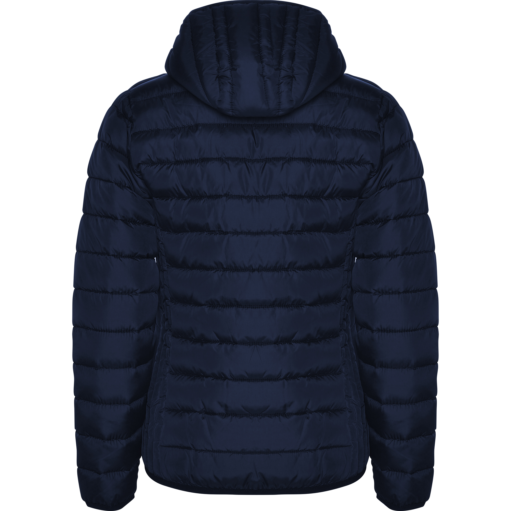 Chaqueta con capucha acolchada resistente al agua. Cremallera frontal invertida al tono con protector de barbilla del mismo tejido. Bolsillos laterales con cremalleras invertidas al tono insertados en los paneles laterales con forma en pecho para mejor ajuste. Vivo elástico al tono en contorno de capucha, puños y bajo. Opción de colores lisos o a contraste en interior.