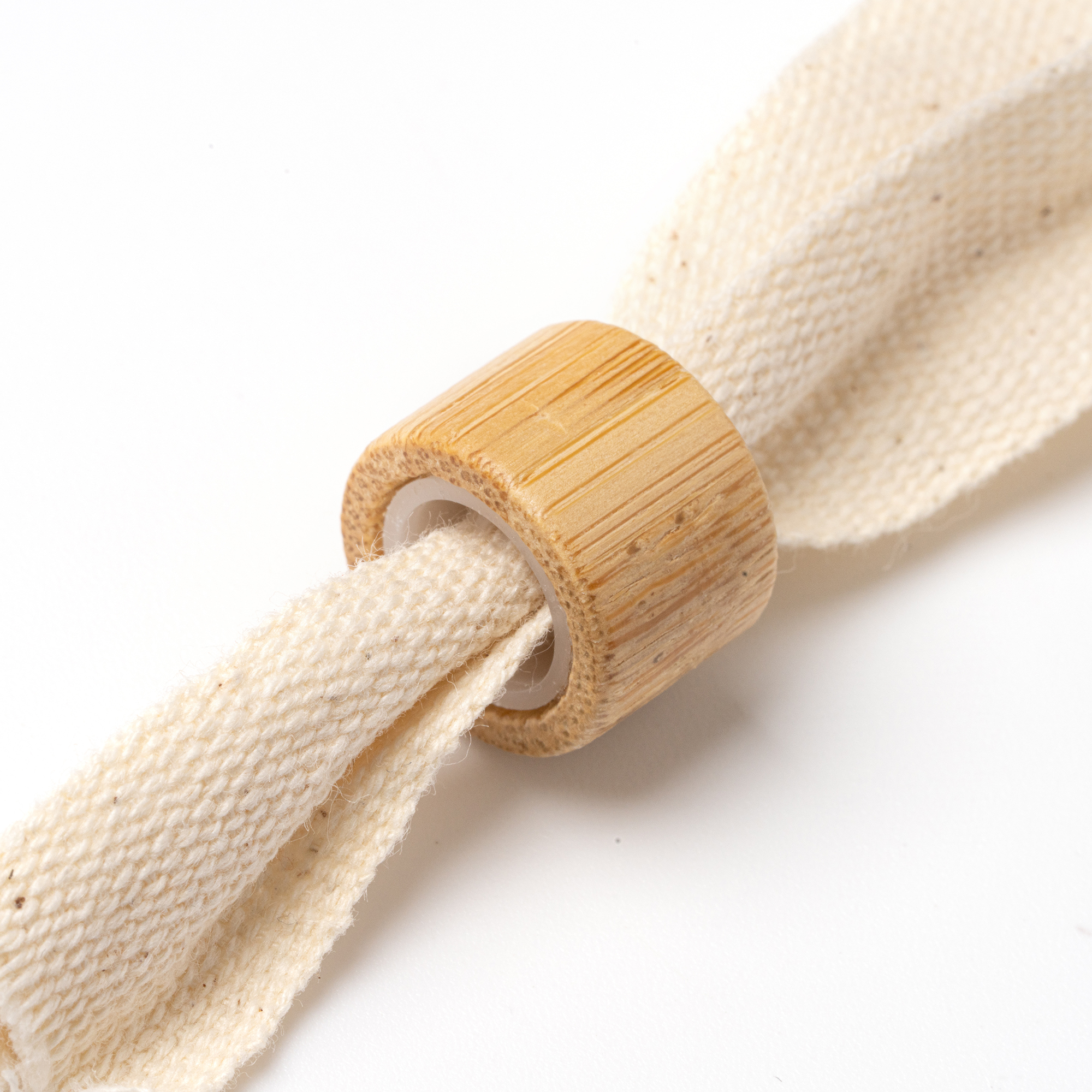 Pulsera de algodón natural con cierre de seguridad (no retornable) en bambú.