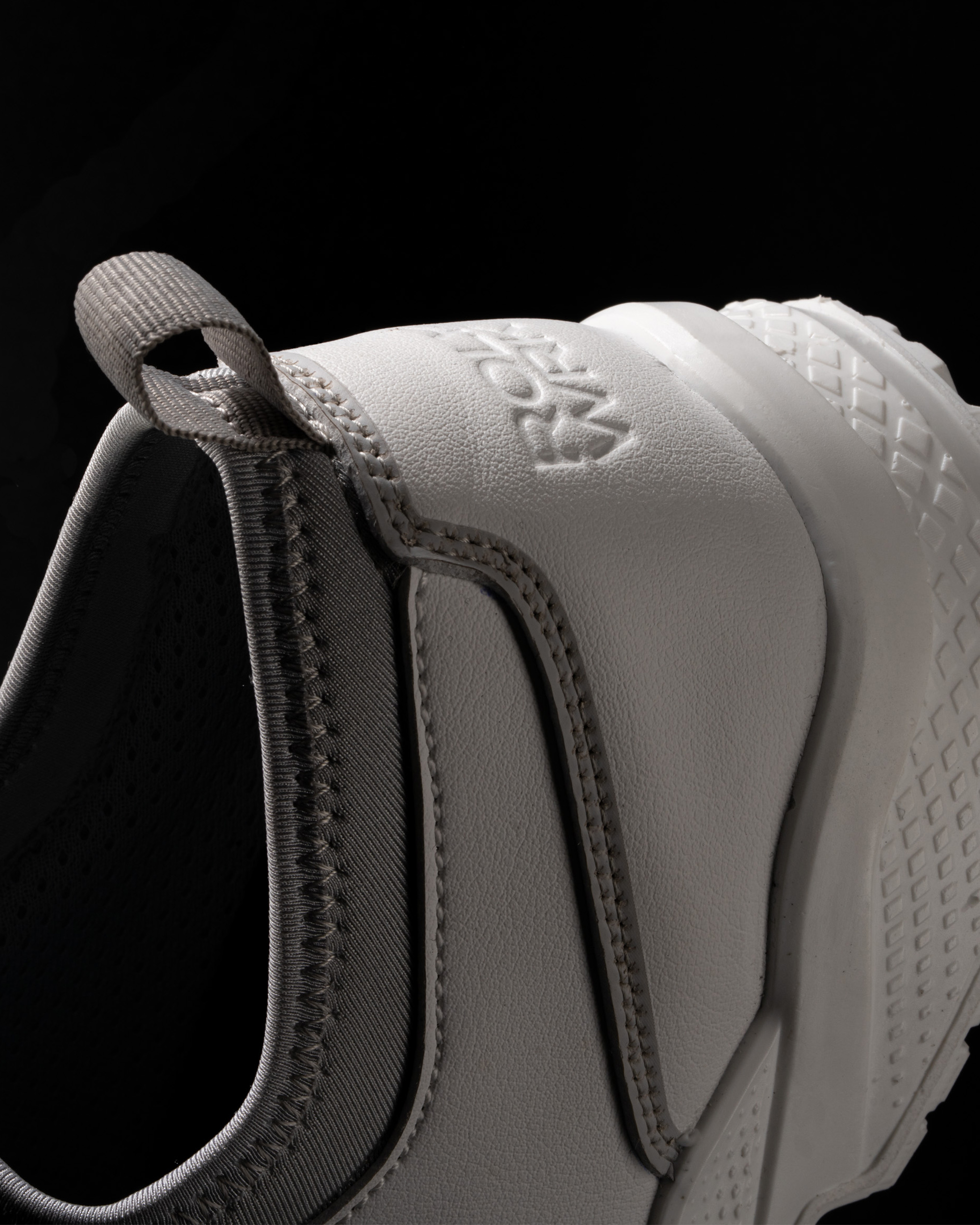 Calzado laboral de tejido de malla tridimensional con cierre en licra que se ajusta al tobillo, impidiendo la entrada de materiales.