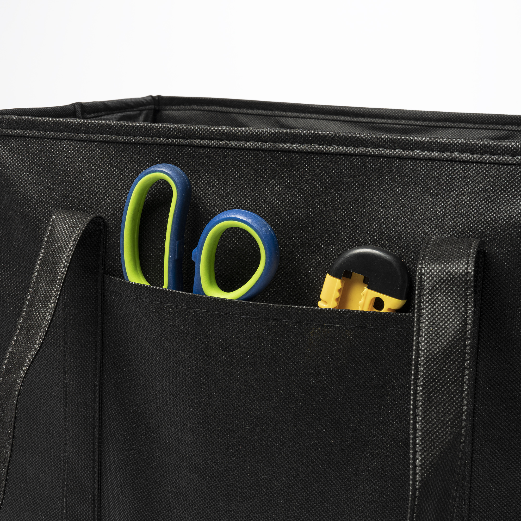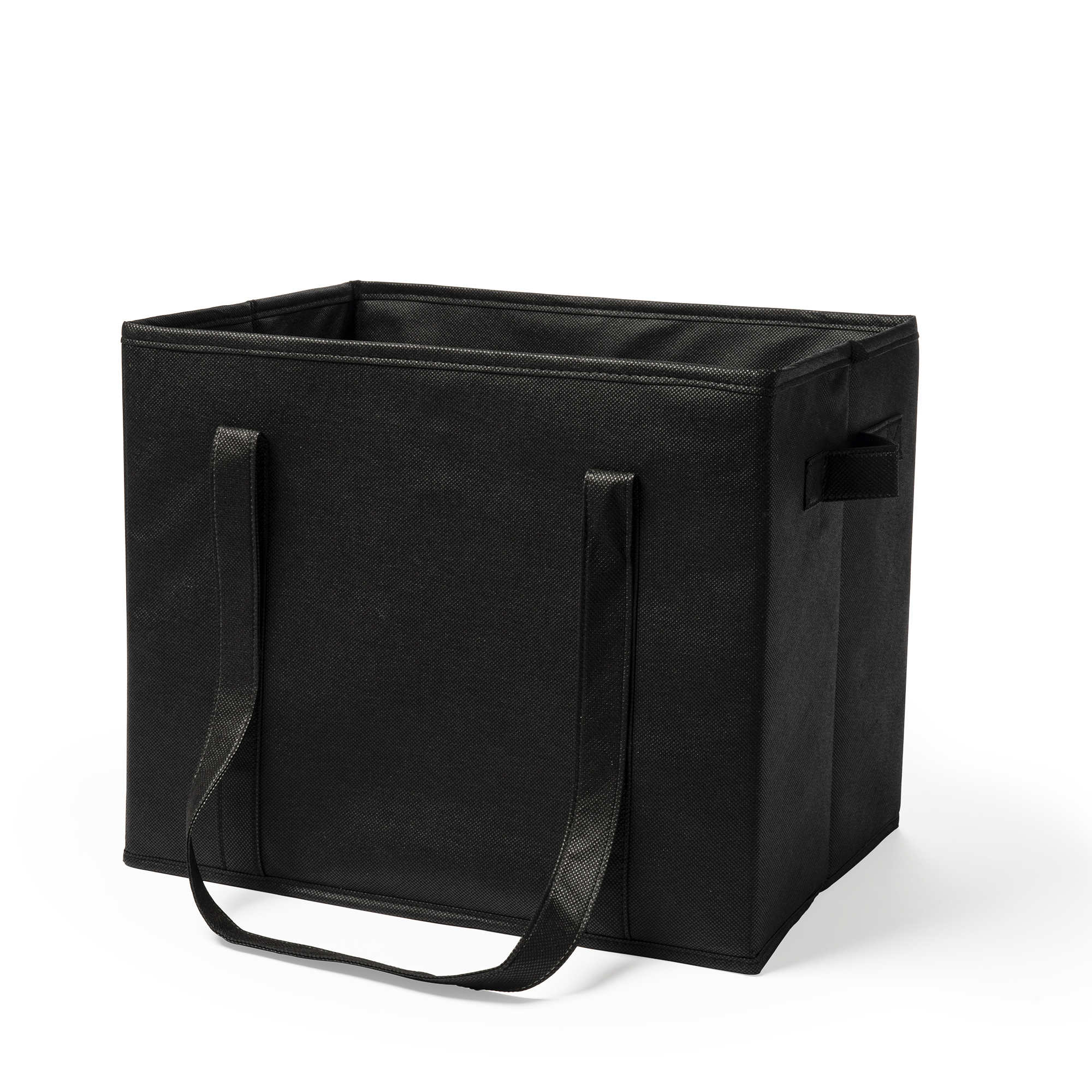 Organizador de maletero para coche en resistente non-woven. Asas de transporte reforzadas, asas laterales y bolsillo frontal. Base rígida para un mejor ajuste.