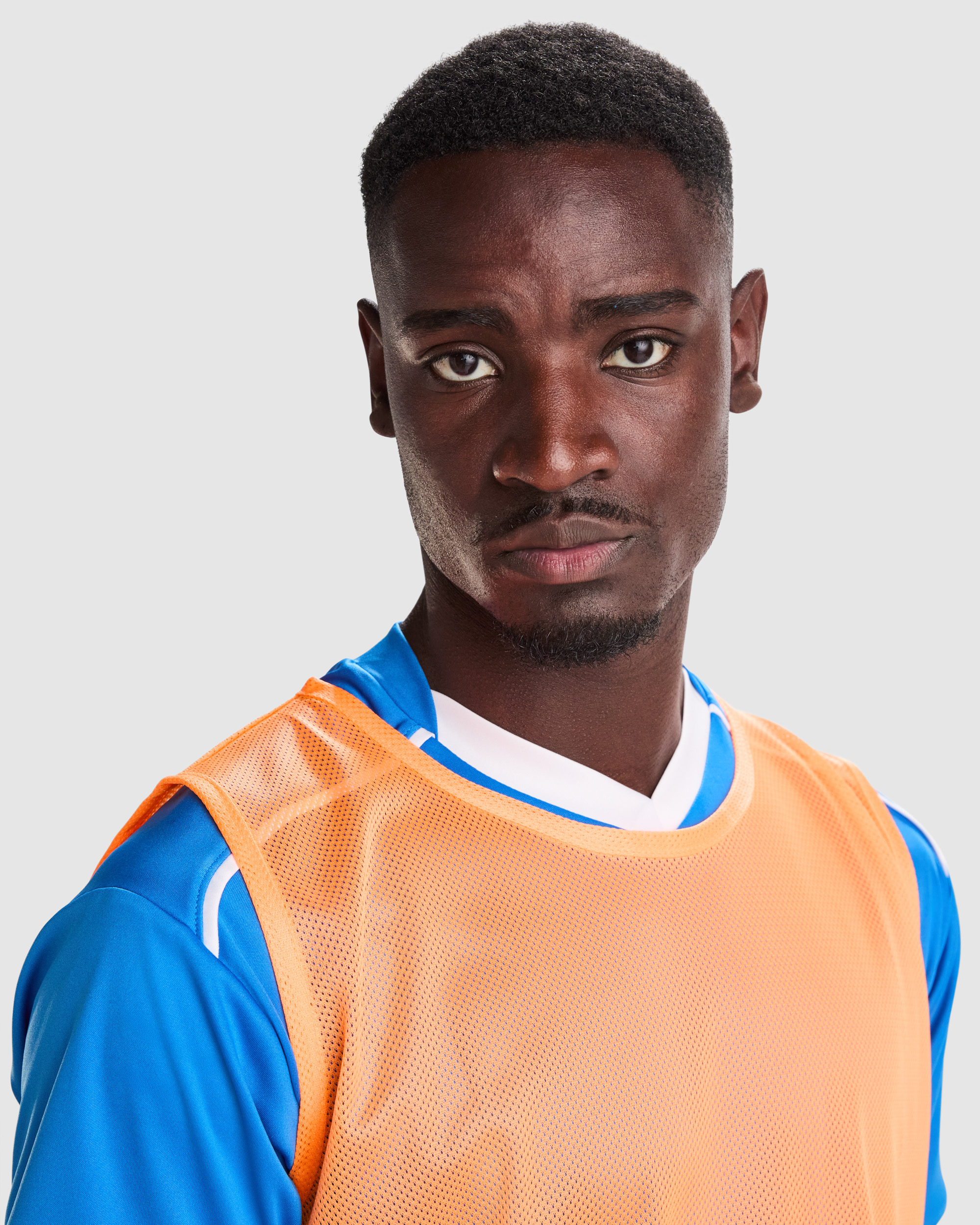 Peto deportivo unisex transpirable. Sisas y cuello ribeteados en el mismo tejido. Doble costura en el bajo.