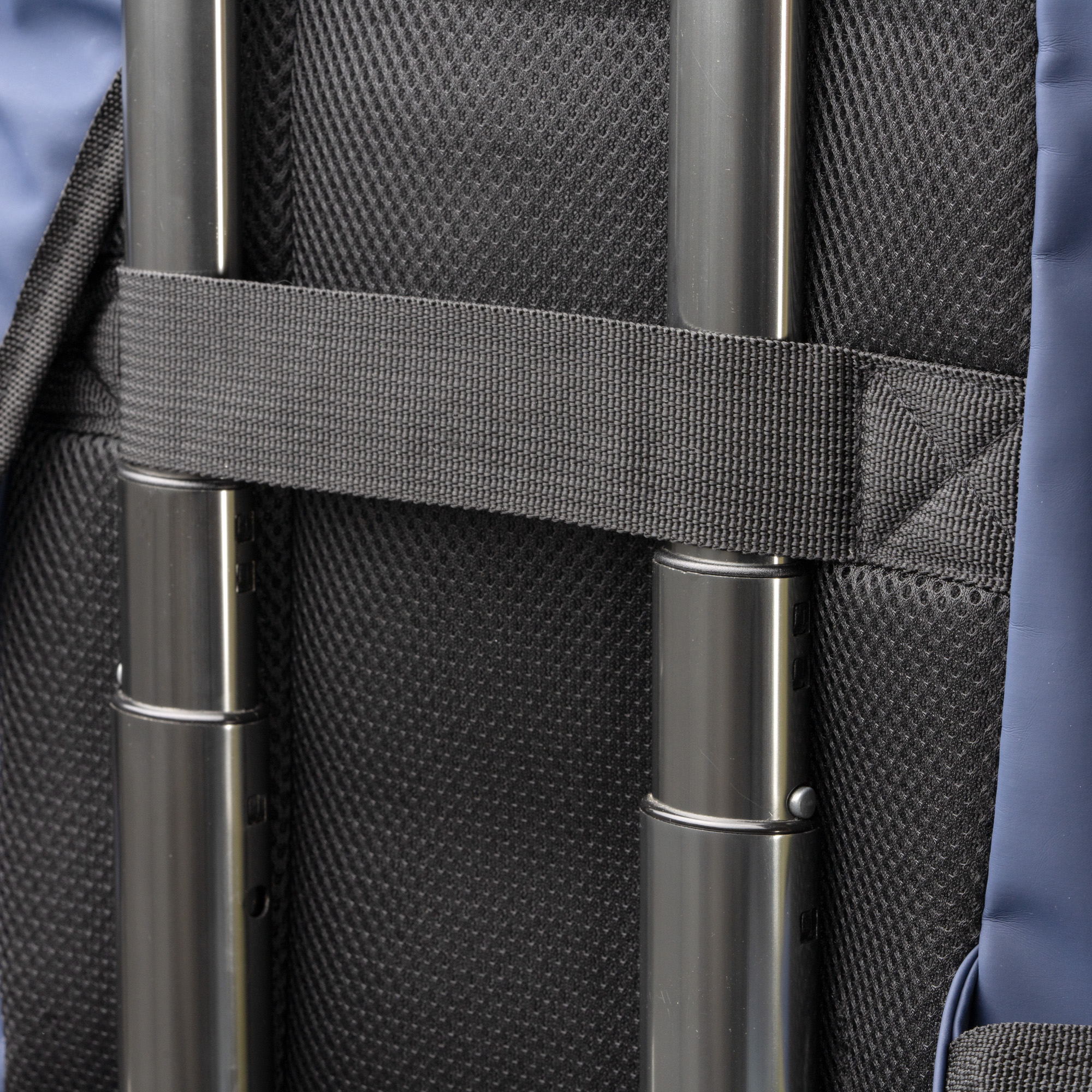 Mochila elaborada en RPET 300D con revestimiento en PVC, que la hace repelente a los líquidos. Esta característica se refuerza gracias a sus cremalleras impermeables. Cuenta con un compartimento principal con cierre de doble cremallera y un bolsillo interior diseñado para llevar un portátil de hasta 15″, además de dos bolsillos adicionales de menor tamaño para el trasporte de otros enseres. En el exterior cuenta con un bolsillo con cierre de cremallera, también hermética, de gran amplitud, además de dos compartimentos laterales para botellas . En sus asas incluye una cinta reflectante. Espalda y asas van acolchadas para dotarla de mayor comodidad en su uso, contando también con una cinta para trolley, para hacerla más versátil.
