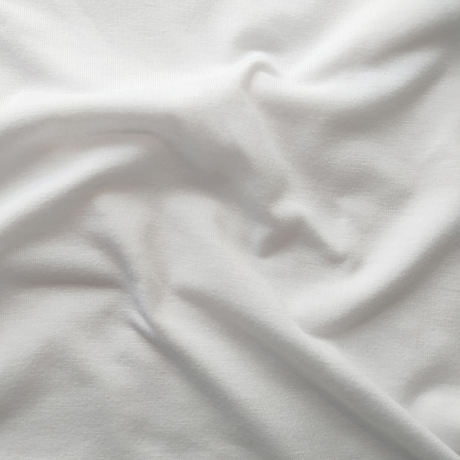 Tejido de poliéster color blanco, con un ancho de 149 cm. Tacto algodón muy suave y con caída. Ideal para camisetas. Rendimiento de 3,55 m/kg. Especial sublimación y acepta serigrafía , transfer y otros reprocesos.