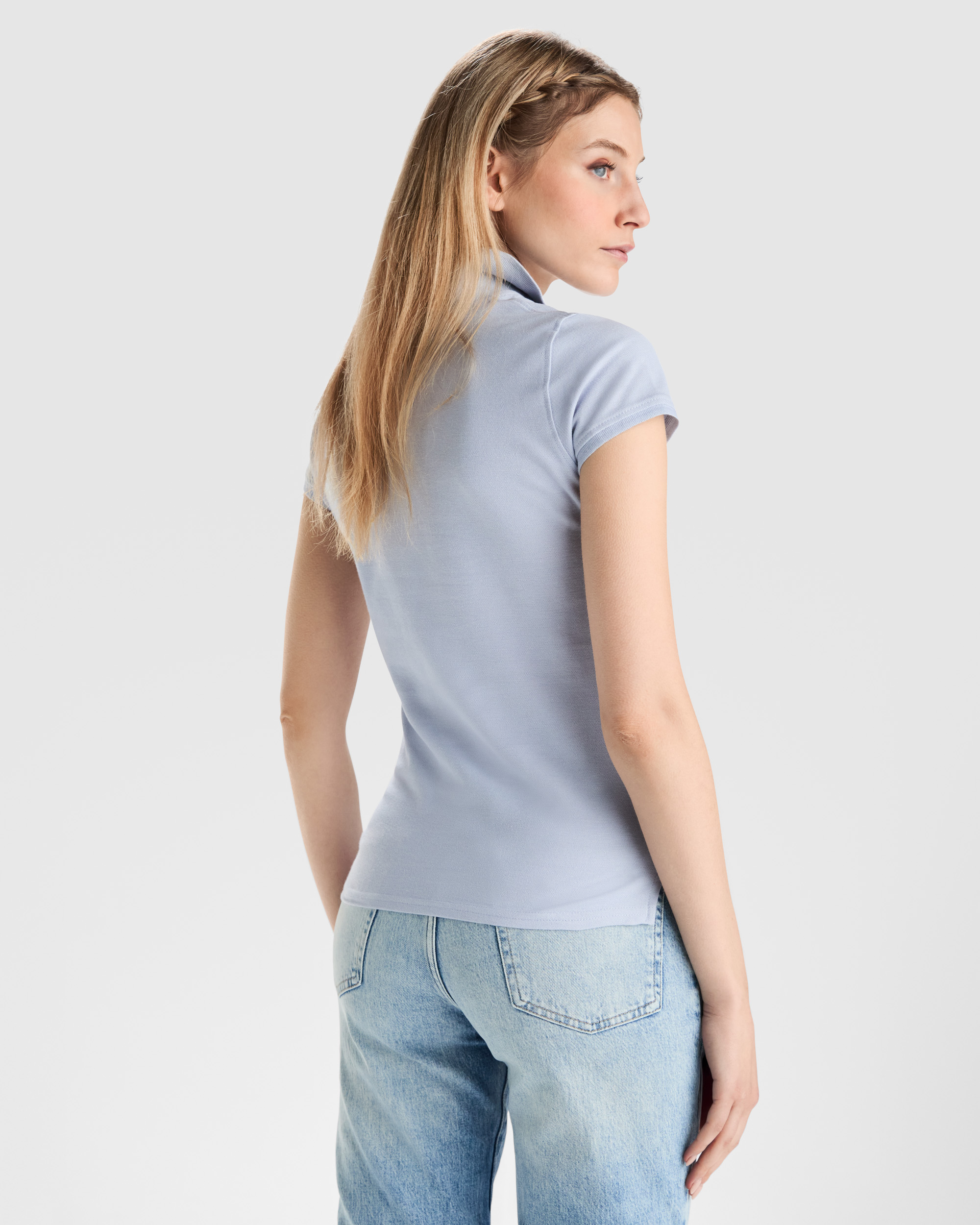 Polo de manga corta de algodón entallado en cintura. Punto piqué. Cuello y mangas tejidos en 1×1. Tapeta de 3 botones. Cubrecosturas en cuello del mismo tejido. Aperturas laterales en bajo.