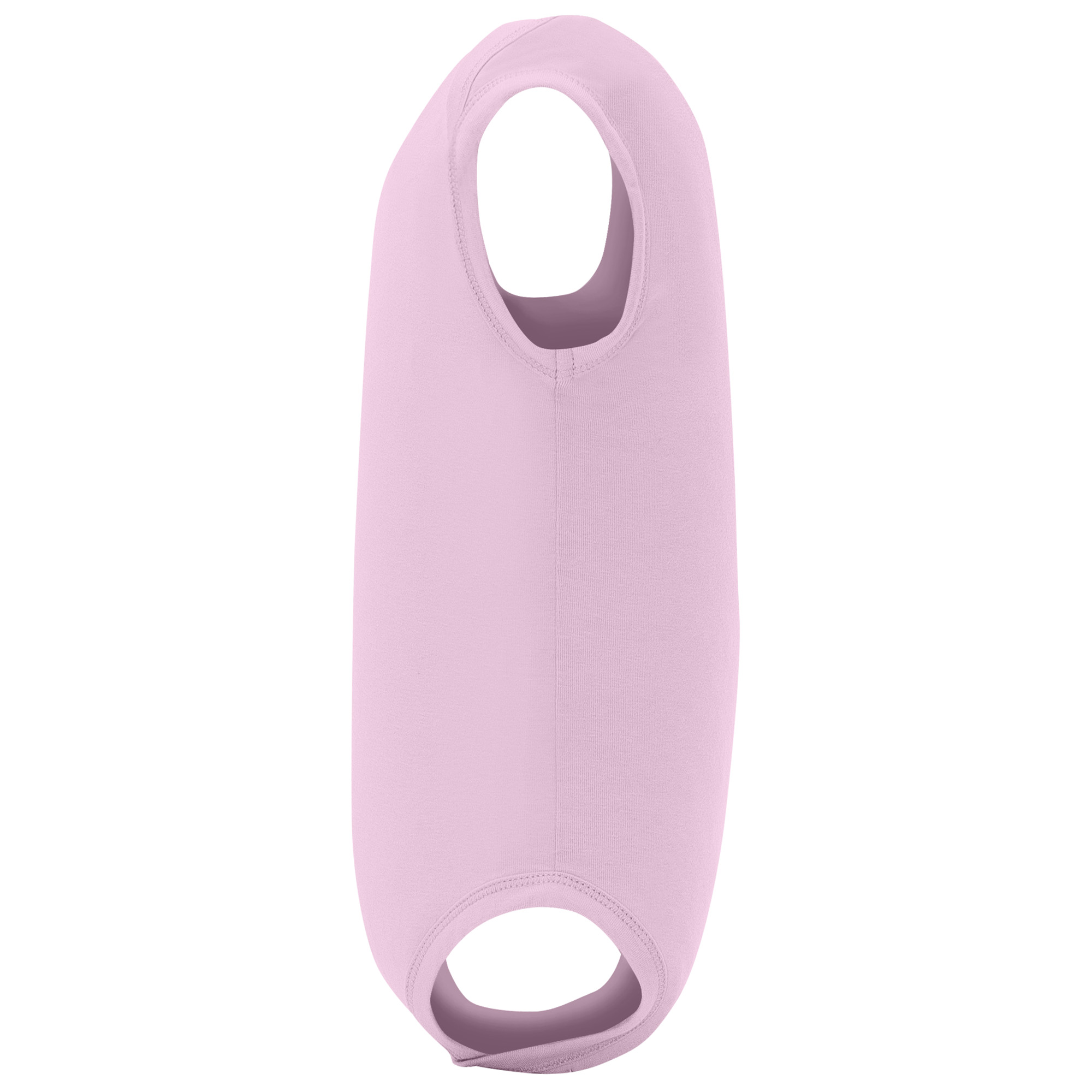 Body de bebé de tirantes de punto liso. Cuello redondo, sisas y bajo ribeteado en canalé 1×1. Cierre con botones a presión en la entrepierna. Hombro de apertura cruzada.