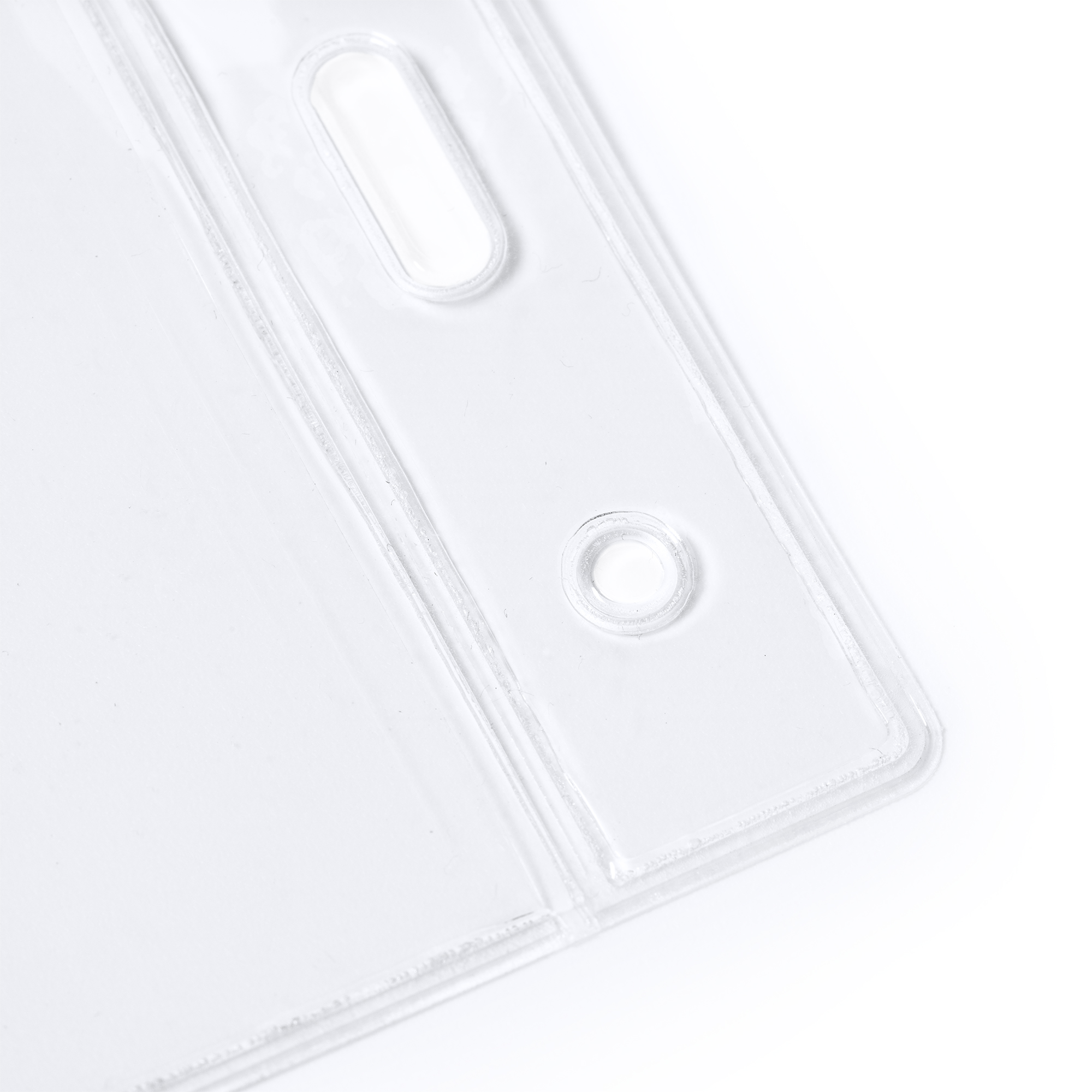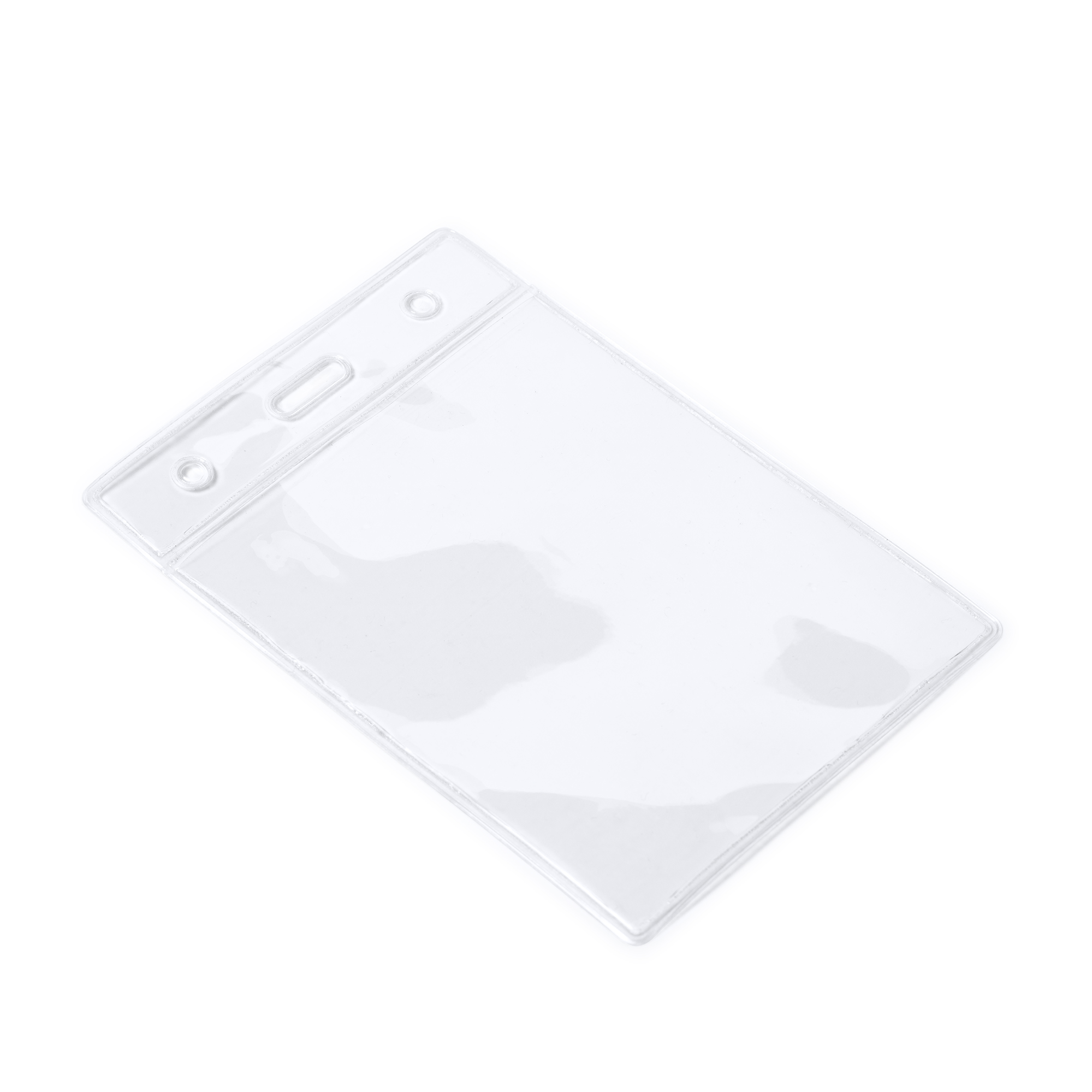 Identificador transparente de PVC de diseño vertical.