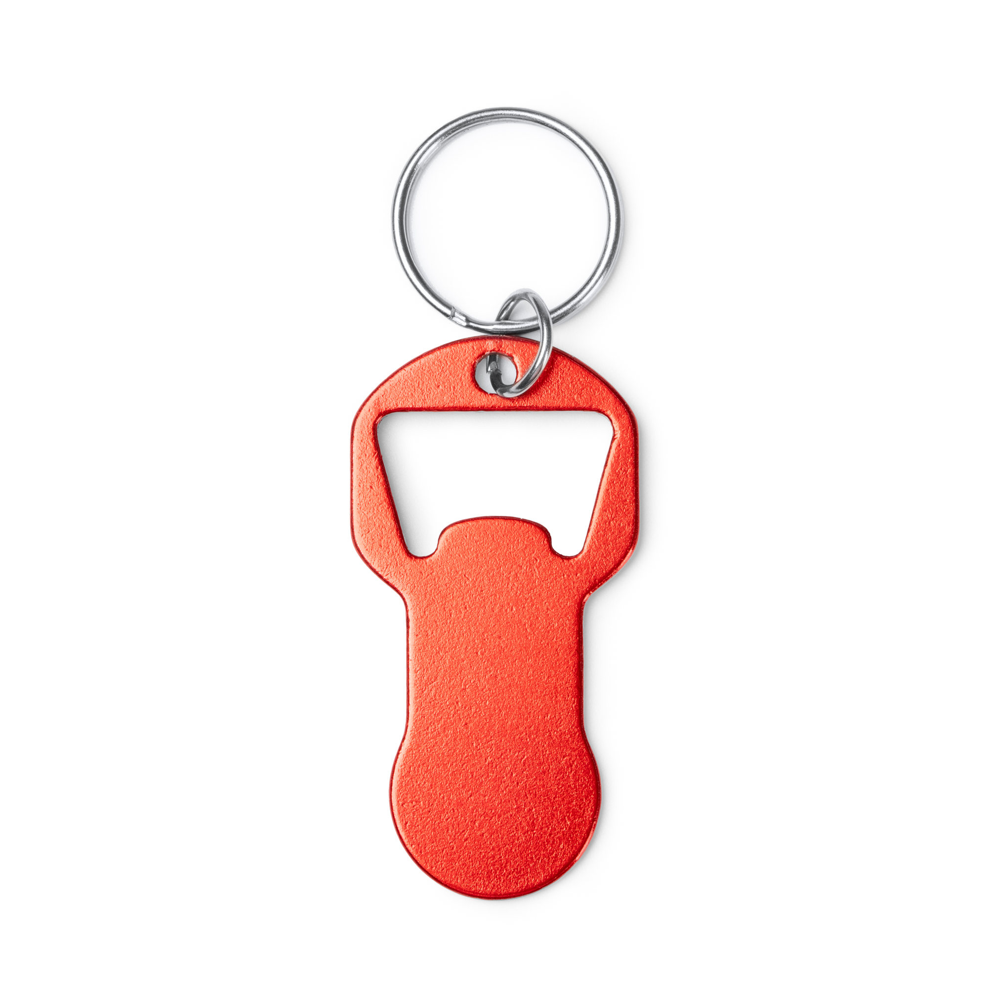 Llavero abridor de aluminio reciclado con moneda para el carro de la compra. Amplia zona de marcaje.