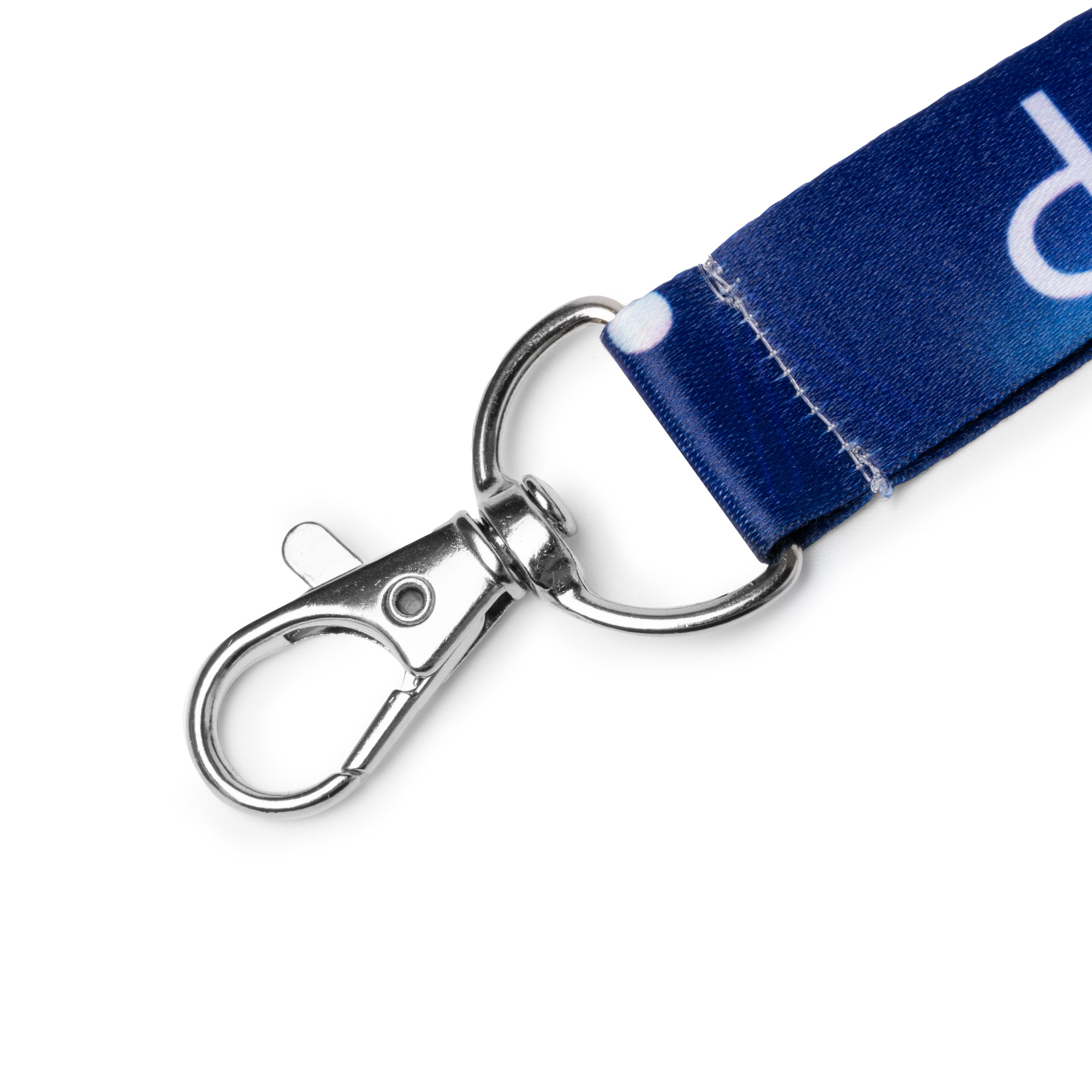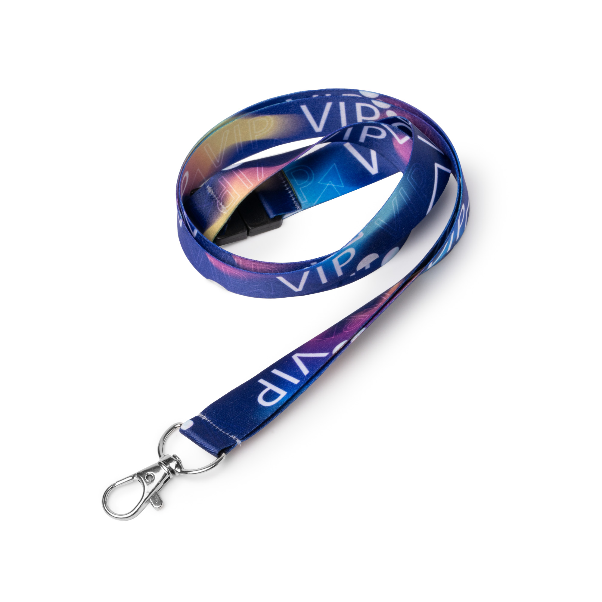 Landyard de poliéster con mosquetón y cierre de seguridad. Especial para sublimación. Este producto de confección se realiza bajo pedido. Stock permanente.
