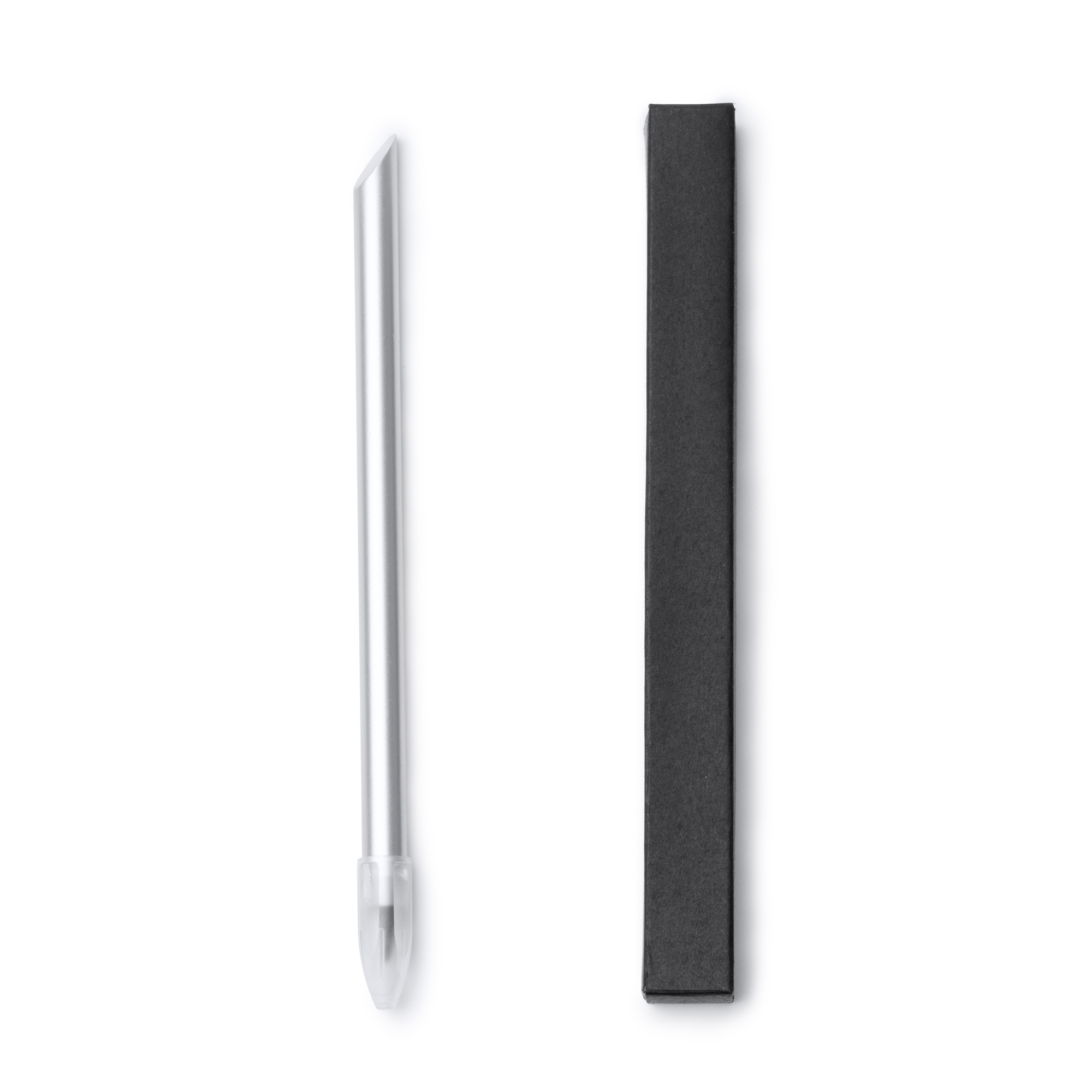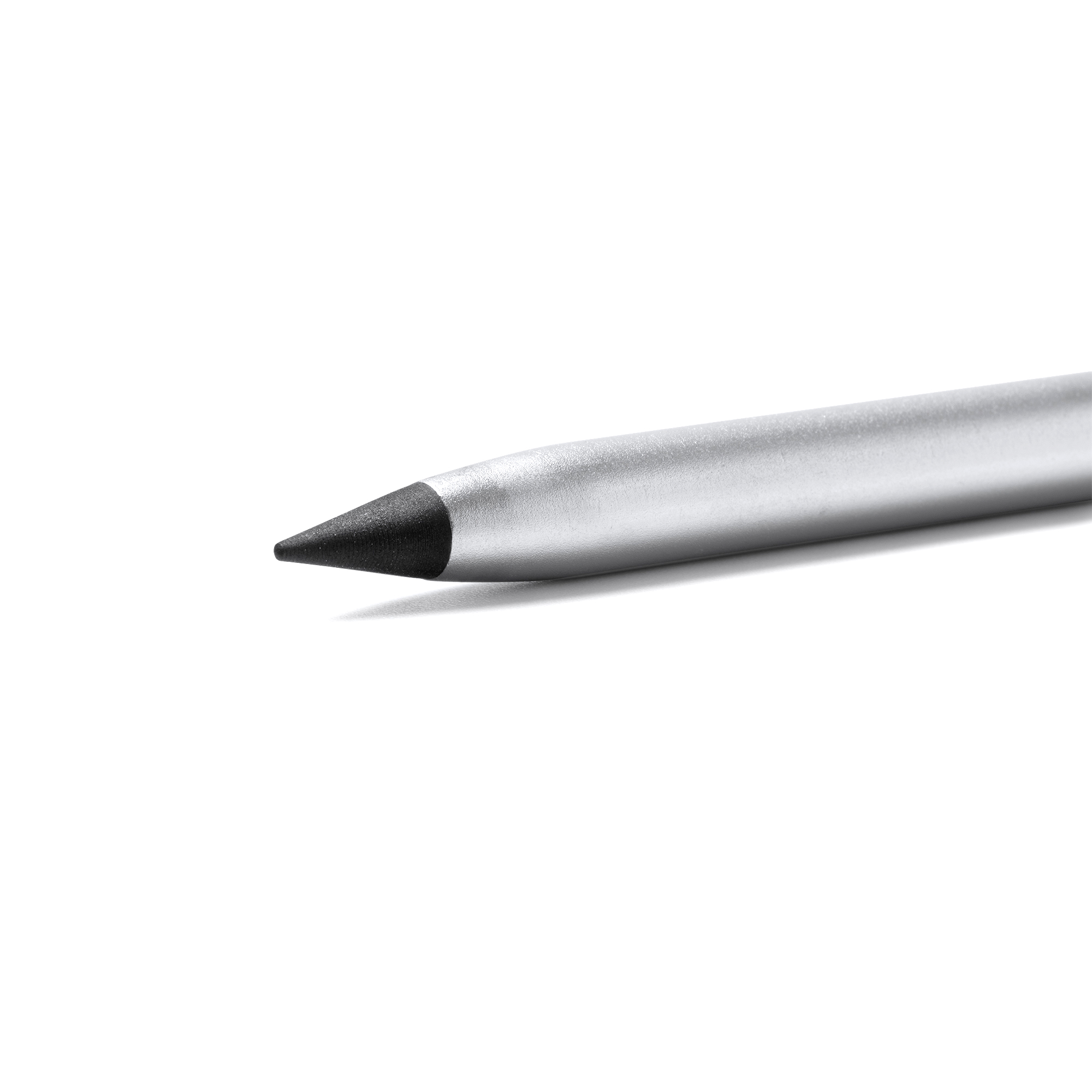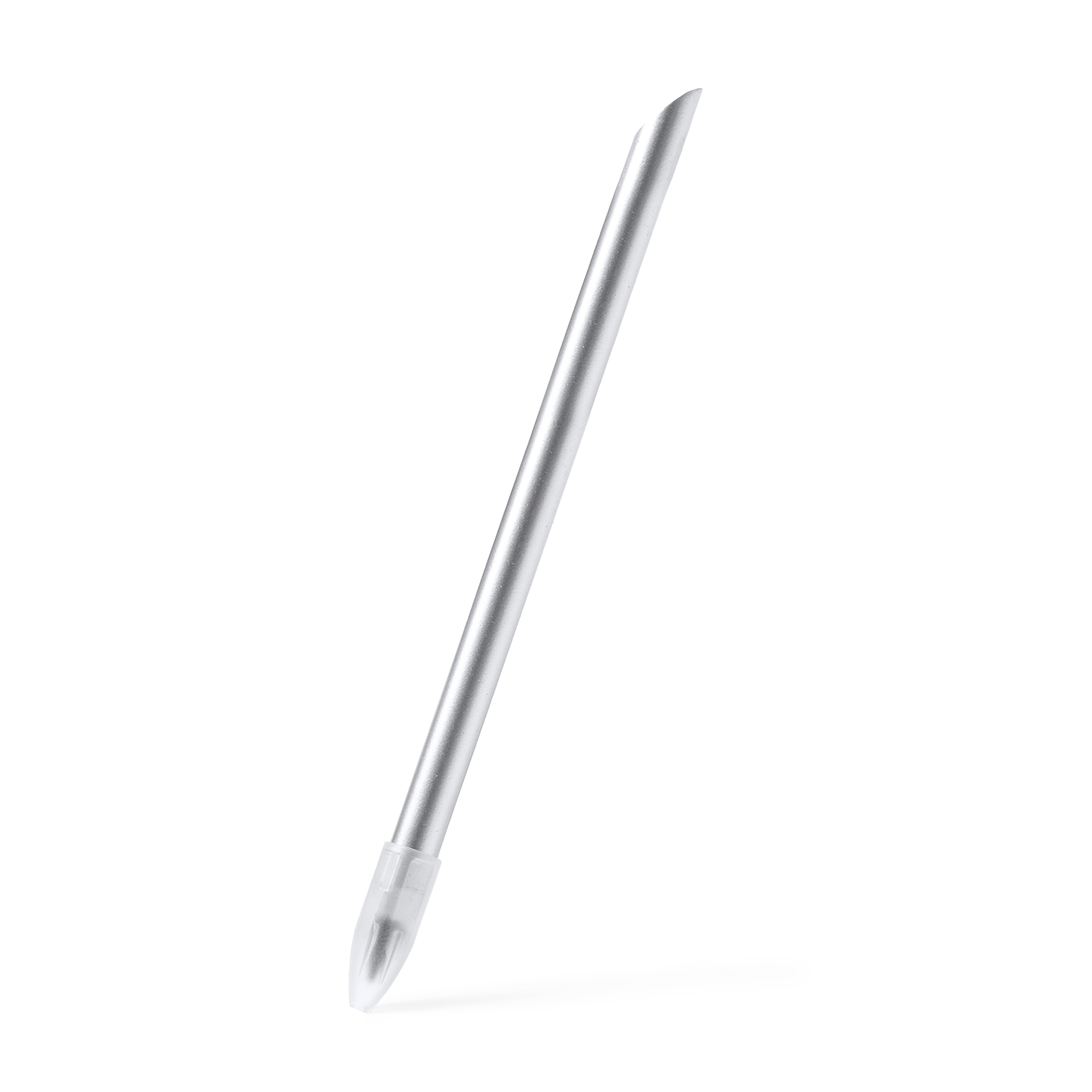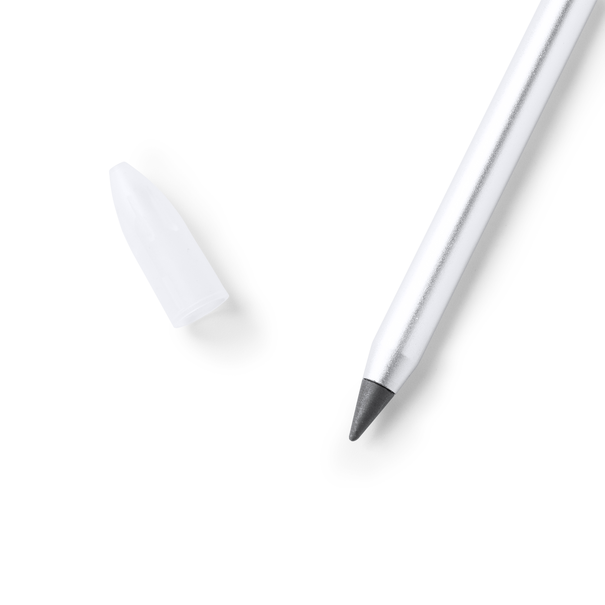 Lápiz con cuerpo de aluminio con elegante diseño. Punta de grafito de escritura infinita reemplazable. Con capucha transparente.