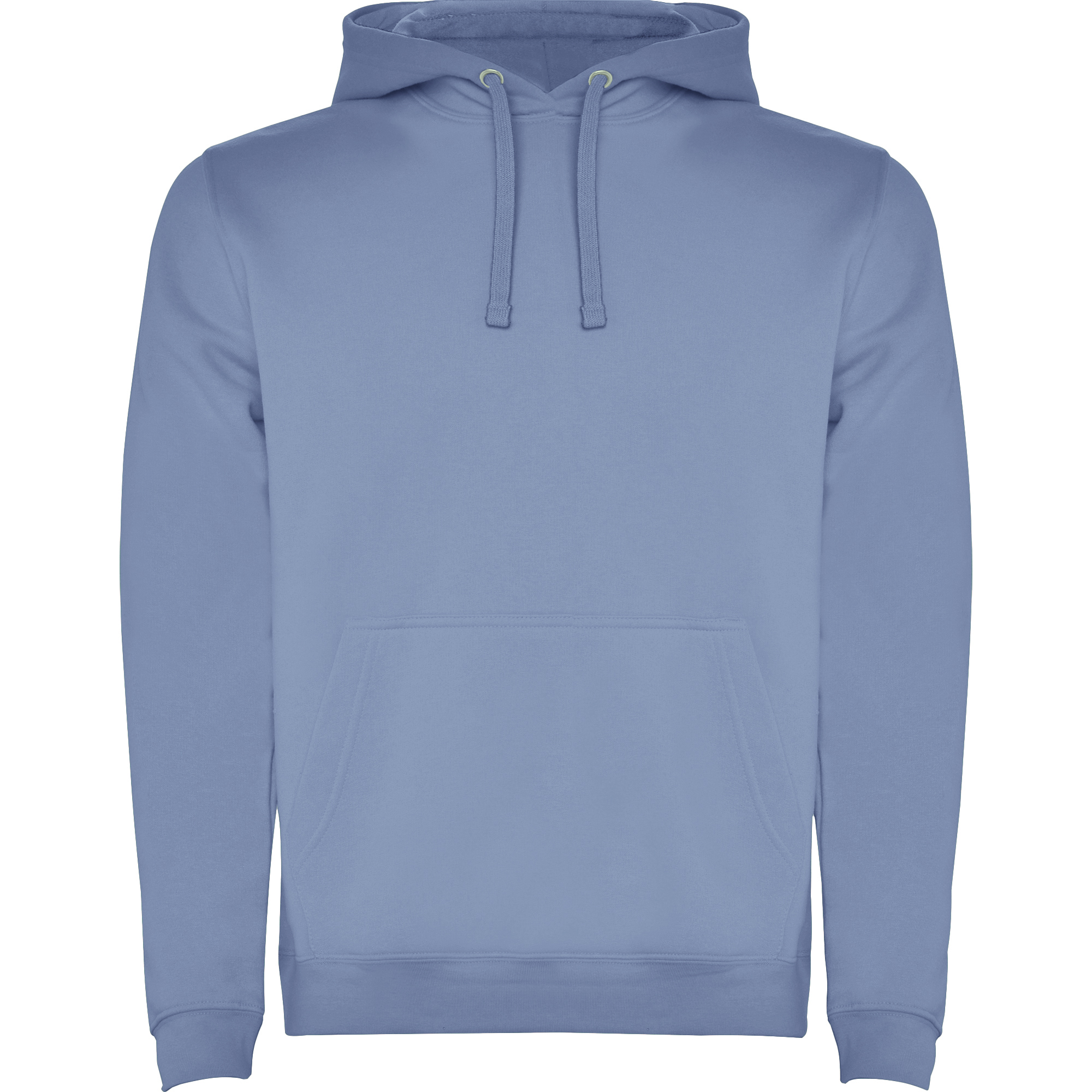 Sudadera con capucha forrada. Puños y cinturilla en canalé 2×1 con elastano. Cubrecosturas del mismo tejido. Cordón plano en capucha. Opciones de colores con capucha a contraste y ojales metálicos al tono.