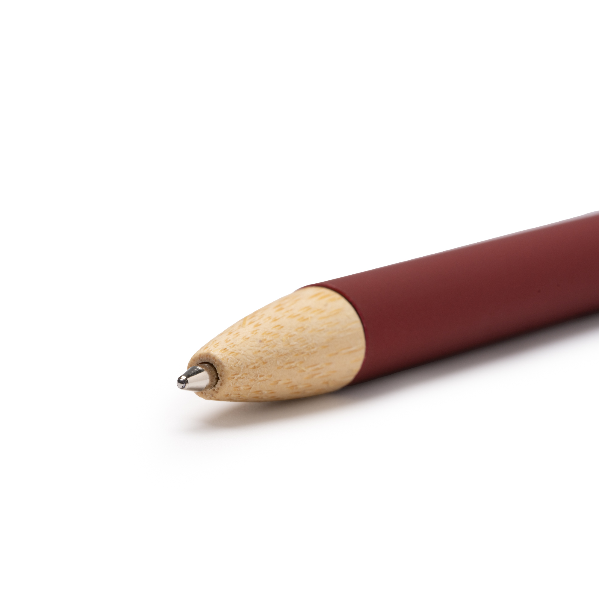 Bolígrafo métalico de acabado goma con pulsador y detalles en bambú, ofreciendo un diseño natural y sostenible. El clip cromado añade un toque de elegancia y funcionalidad. Carga jumbo de tinta azul .